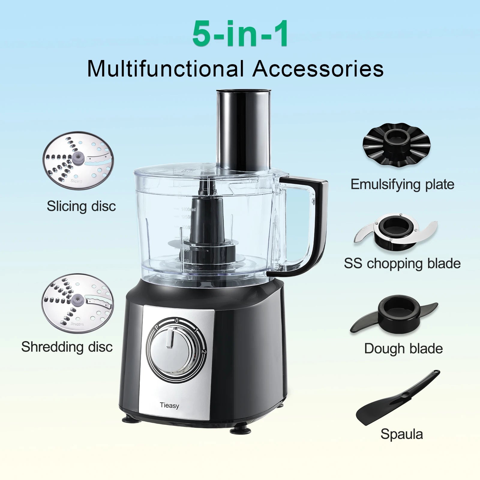 Function: Chopping,Grinding,Knead Dough,Mixing,Pureeing,Shredding,Slicing