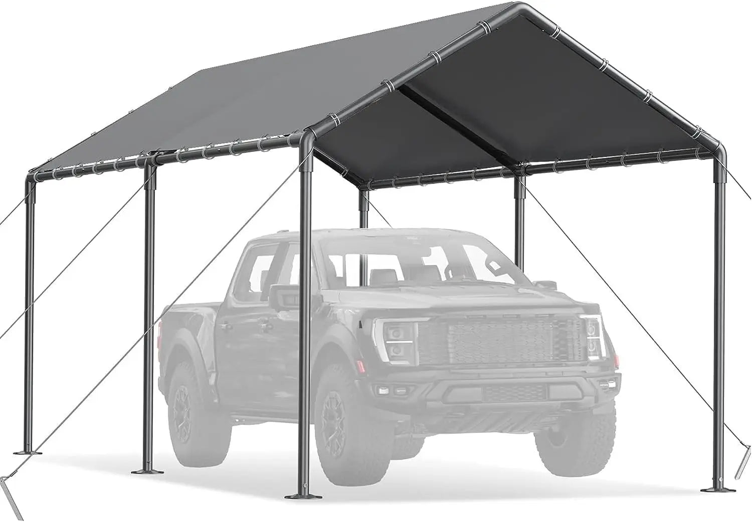 10x20 Heavy Duty, Metal Carport Waterproof Carports Garage Tent with 6 Steel Stakes Outdoor for Car Tuck Boat SUV Party (Grey)