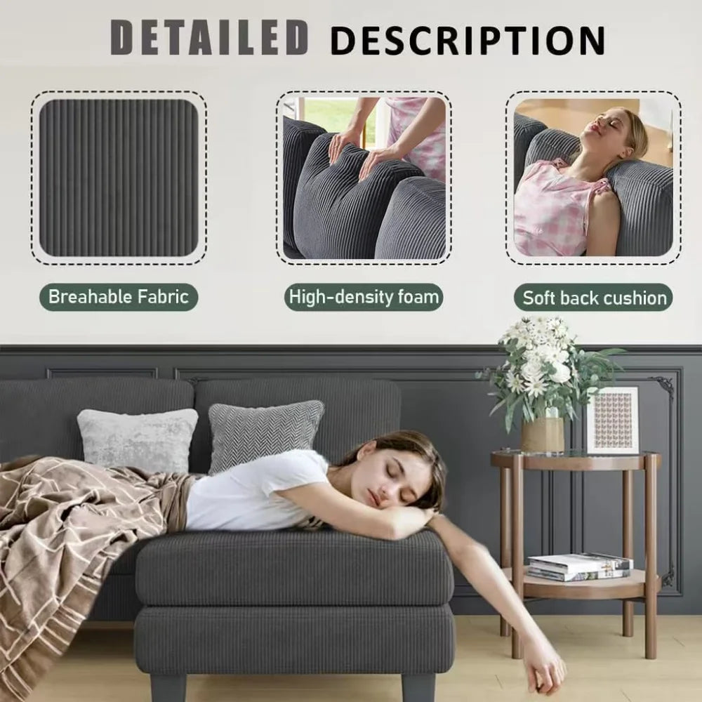 - PREMIUM CORDUROY UPHOLSTERED: Fluffy corduroy of the back and thick seat cushionsare filled with sponge, which is soft, comfortable, elastic and not easy to collapse and has a rich texture and gives you a relaxing feeling. It's easy to care for and won't wrinkle or fade.