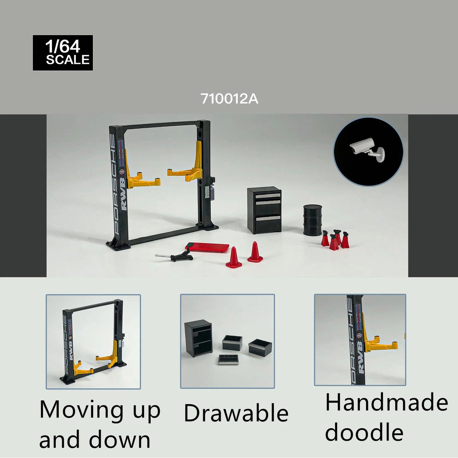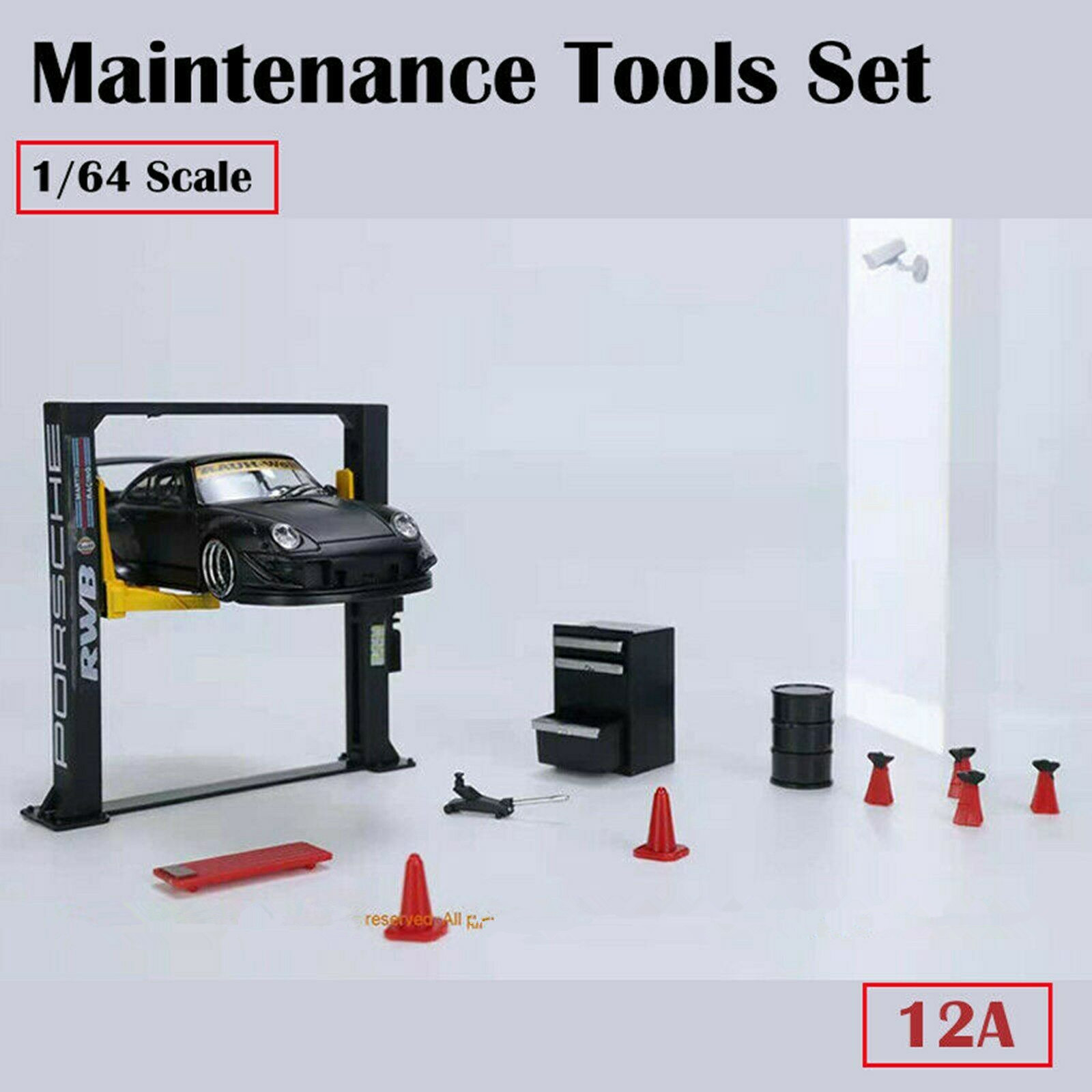 12Pcs/Set 1/64 Garage Maintenance Tools Set ABS Model Car Display Diorama Repair Tool Sets Model 1/64 Scene with Garage Lift Kit