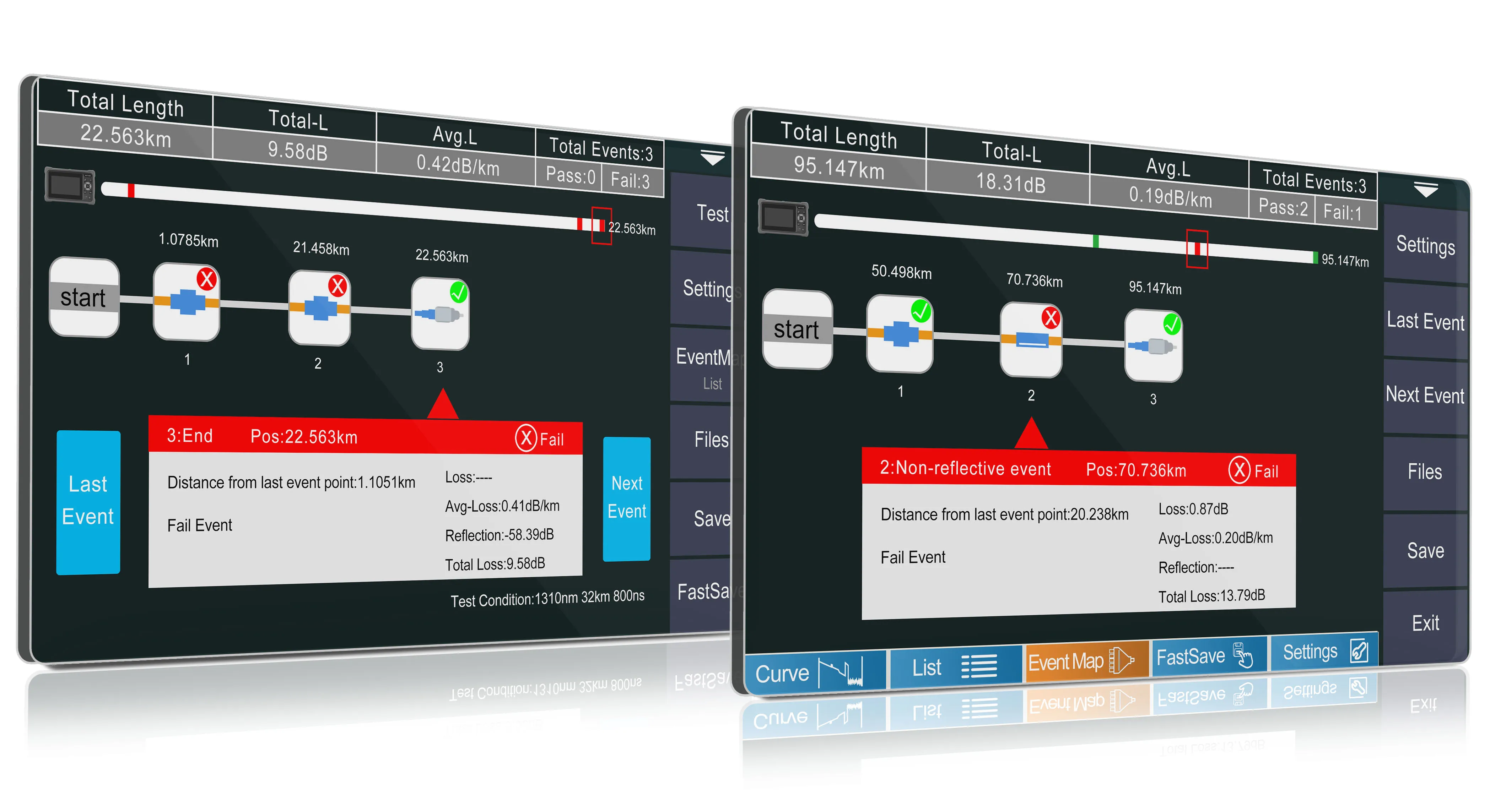 The OTDR optical fiber test is simplified through the event map, and the representation accuracy of the network topology is optimized through intelligent algorithms, and all network components and fault locations are dynamically located and identified at the maximum resolution, thereby bringing a new experience to the optical fiber test engineer.