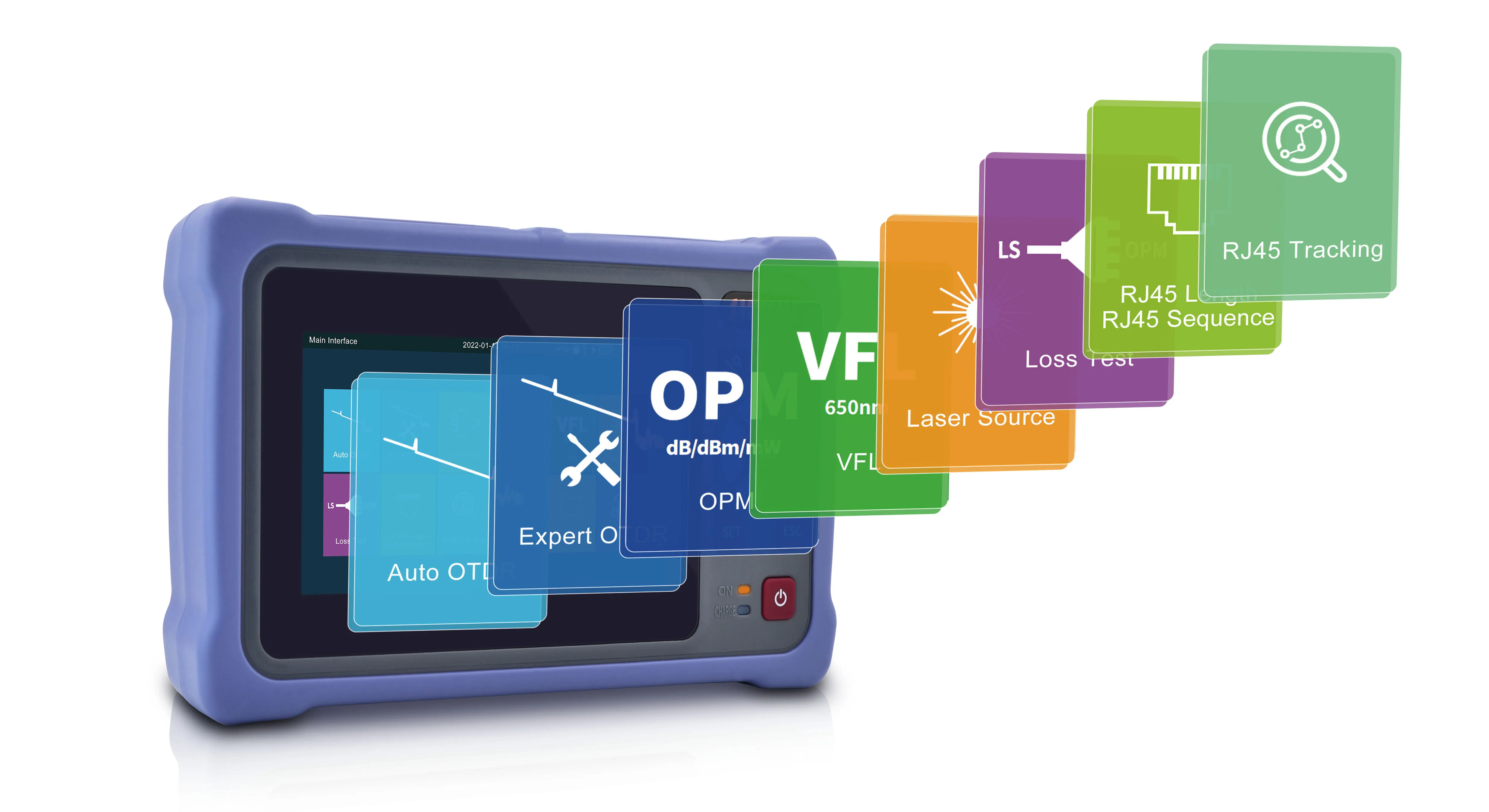 Built-in Auto OTDR+Expert OTDR+OPM+OLS+VFL+Optical Loss Test+RJ45 Cable Tracker(Exclude End Face Dection)