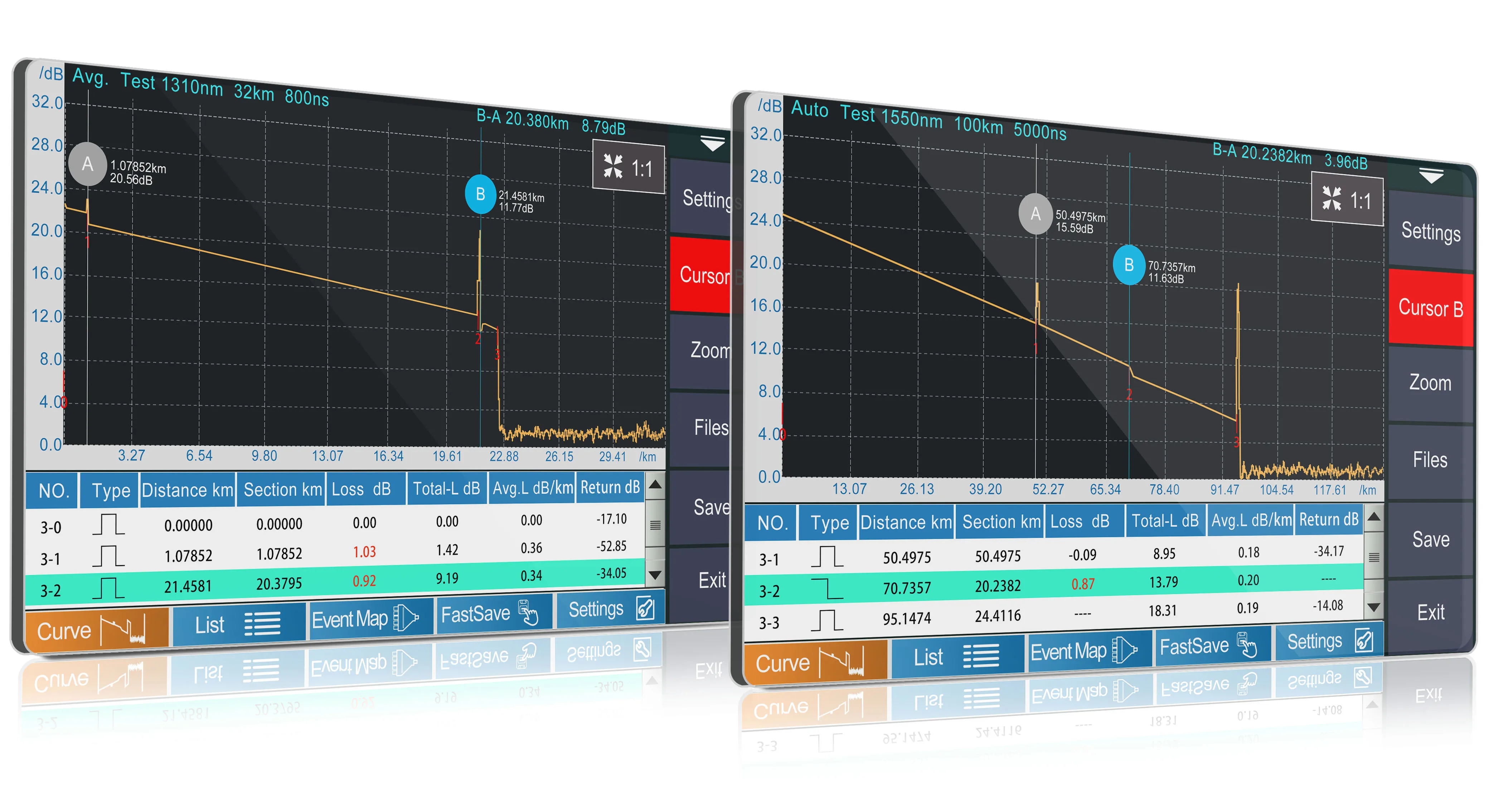 Auto OTDR, expert OTDR,Event map,Smart Graphical analysis of fiber optic connections