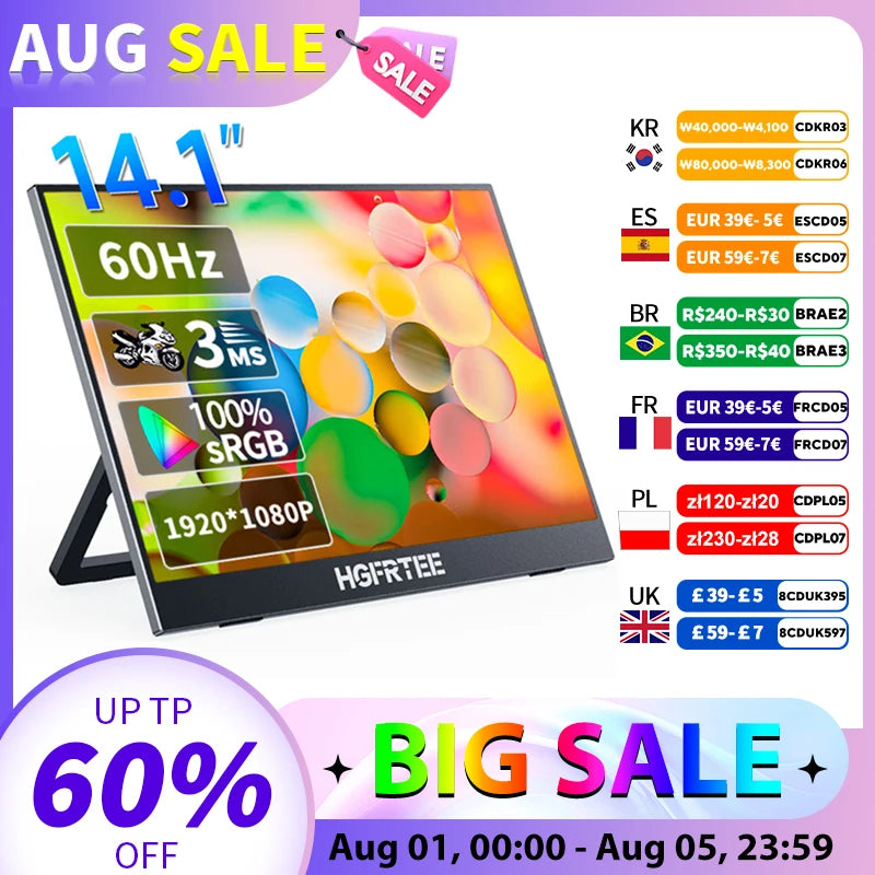 Enjoy stunning visuals with the HGFRTEE 14.1" FHD IPS Portable Monitor. Featuring 1920*1200 resolution, it delivers sharp, vibrant images for work or play.