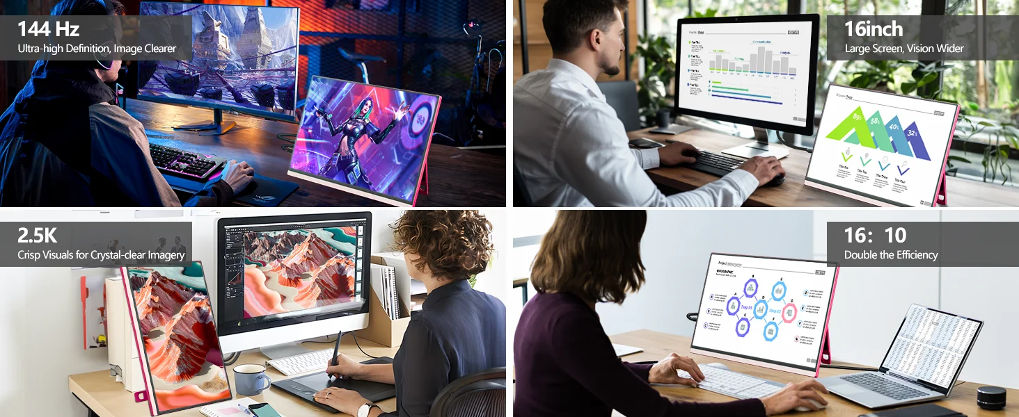 16 inch 2.5K 144Hz Portable Gaming Monitor,2560x1600 100% sRGB HDR FreeSync ,Ultra Slim w/Kickstand , Blue Light External Screen