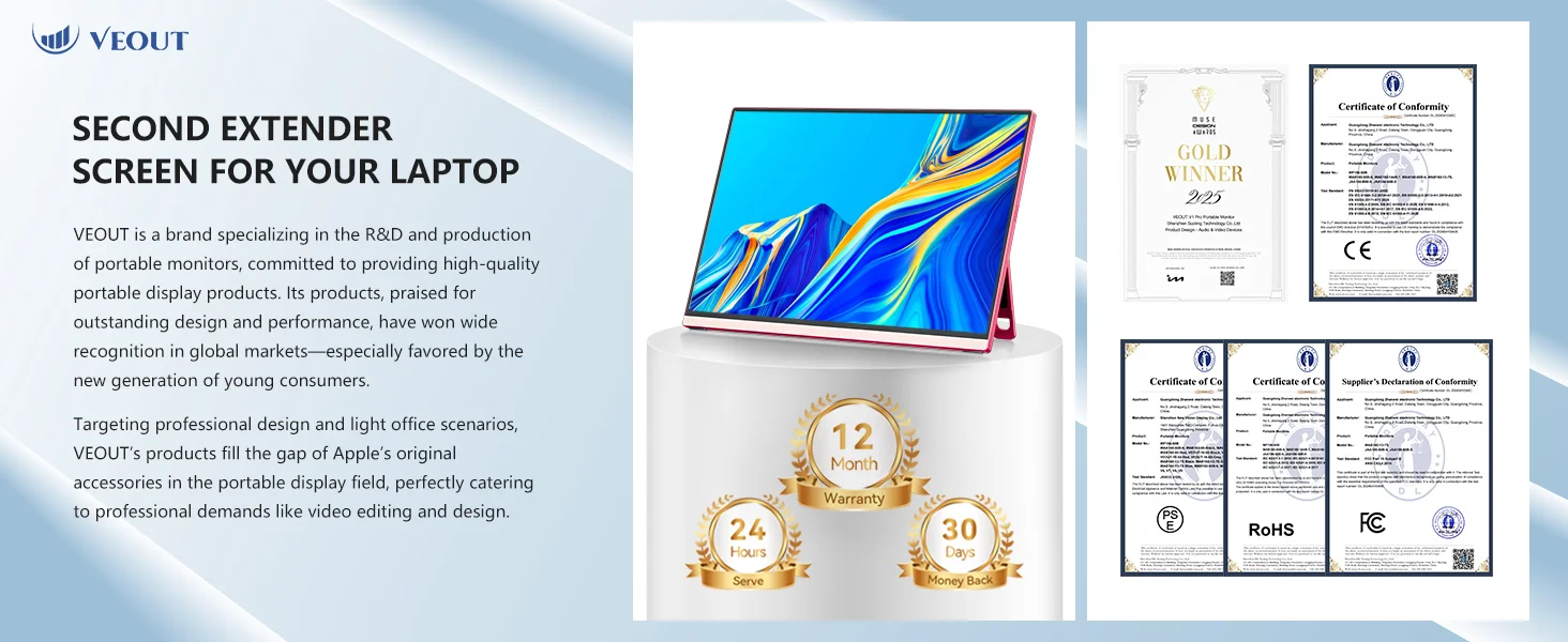 Safety, Stability and Stand Design: The built - in stand of this portable display not only ensures safe and stable placement but also allows for multi - angle adjustments to suit different viewing angles.The aluminum alloy material is sturdy and durable, and it can easily withstand daily wear. Whether in the daily office scenario or during outdoor leisure moments, it can stably present the screen.