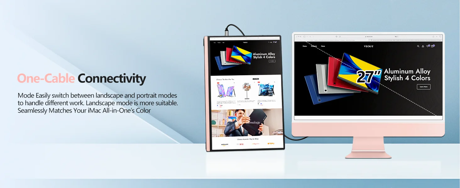 Multiple Display Mode: This portable monitor supports multiple display modes such as duplicate, extend, second - screen, and vertical display. Creative professionals can boost their productivity with the extend mode, gamers can fully utilize the high - refresh - rate mode for a smoother gaming experience, and mobile workers can manage their tasks more efficiently with the second - screen mode.