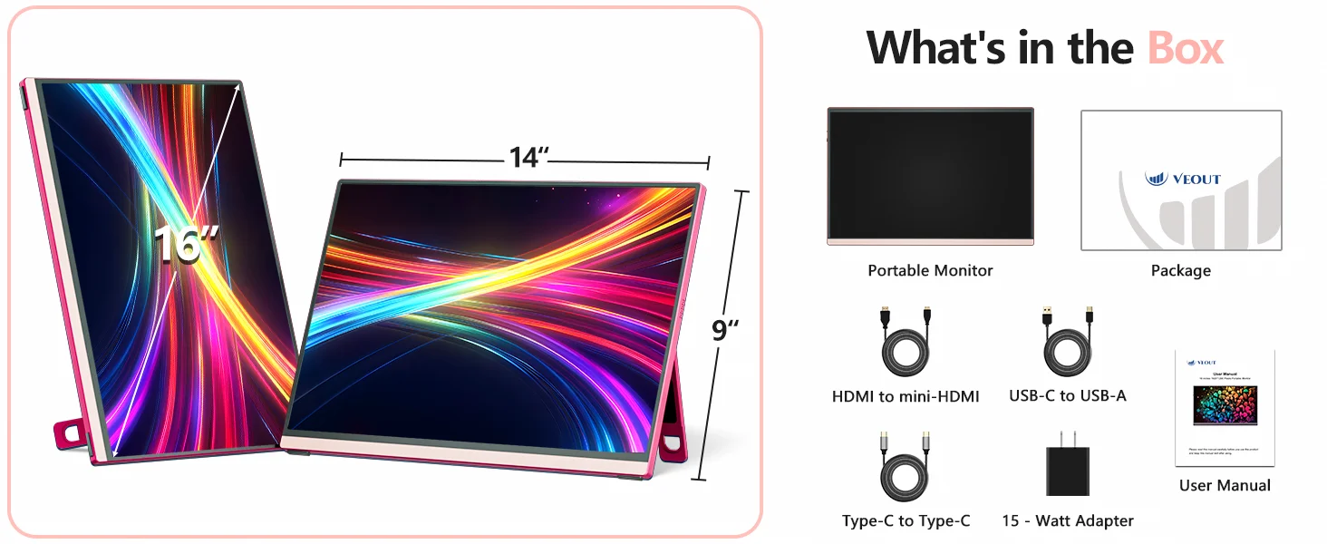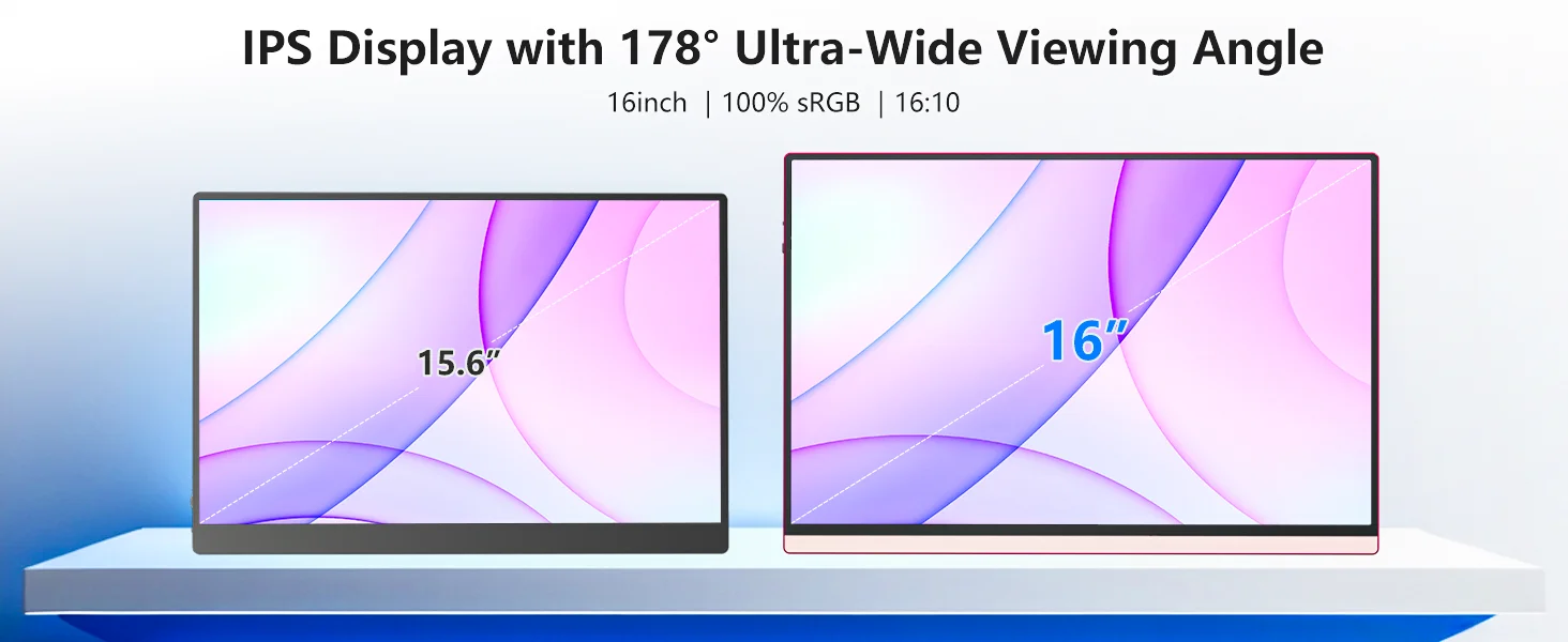 Slim and Lightweight: Look no further than our ultra-sleek laptop screen extender! With a slim, lightweight design and a durable metal shell, this 16" laptop extended monitor is only 1.64 pounds and 0.4 inches thick, it's the perfect size for packing in your bag and taking with you wherever you go. Plus, with our 24/7 customer service and 12-month warranty, you can rest assured knowing that you're getting the best of the best. Say goodbye to a bulky, cumbersome portable view!