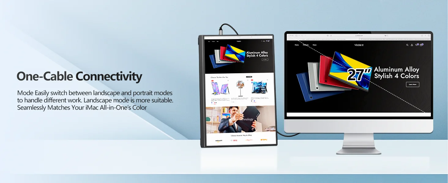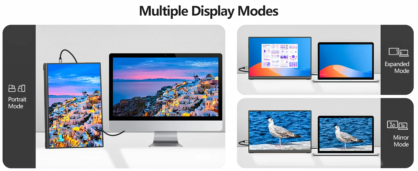 Multiple Display Mode: This portable monitor supports multiple display modes such as duplicate, extend, second - screen, and vertical display. Creative professionals can boost their productivity with the extend mode, gamers can fully utilize the high - refresh - rate mode for a smoother gaming experience, and mobile workers can manage their tasks more efficiently with the second - screen mode.