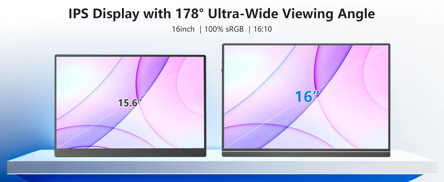 Slim and Lightweight: Look no further than our ultra-sleek laptop screen extender! With a slim, lightweight design and a durable metal shell, this 16" laptop extended monitor is only 1.64 pounds and 0.4 inches thick, it's the perfect size for packing in your bag and taking with you wherever you go. Plus, with our 24/7 customer service and 12-month warranty, you can rest assured knowing that you're getting the best of the best. Say goodbye to a bulky, cumbersome portable view!