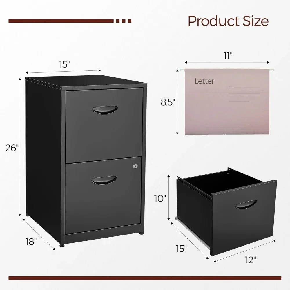 - 【Ample Storage with Adjustable Space】 File cabinet dimensions: 26"H x 15"W x 18"D. Two spacious drawers can accommodate the vast majority of documents, allowing you to store A4, Letter,and file box, Whether you need to organize office supplies, documents, or other items, this metal file cabinet offers versatile and ample storage, keeping everything neatly arranged