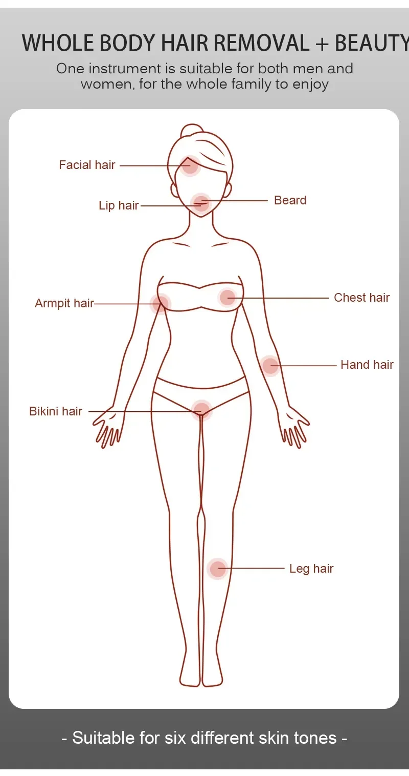 *Big Spot sizes:12*25mm for large ares such as back fast hair removal , lip hair removal and nice beard line