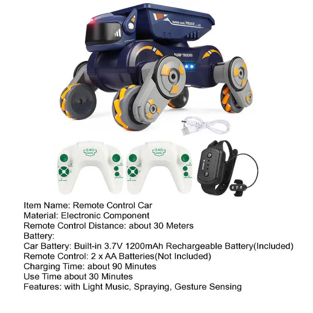 2.4GHz Remote Control Car with Light Music Spraying Gesture Sensing Robot Dog Toy Electric RC Stunt Car Crawler Vehicle Toddlers Boys Girls Gift