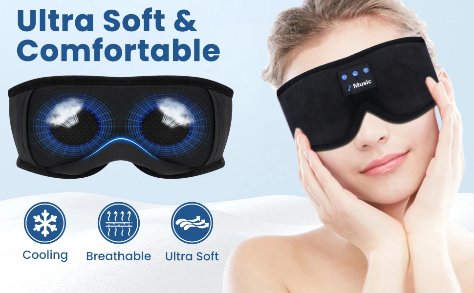 3D Bluetooth Sleeping Mask Headphones Eye Mask Comfortable Wireless Music Sleep Mask Noise Reduction Blackout Sleeping Mask