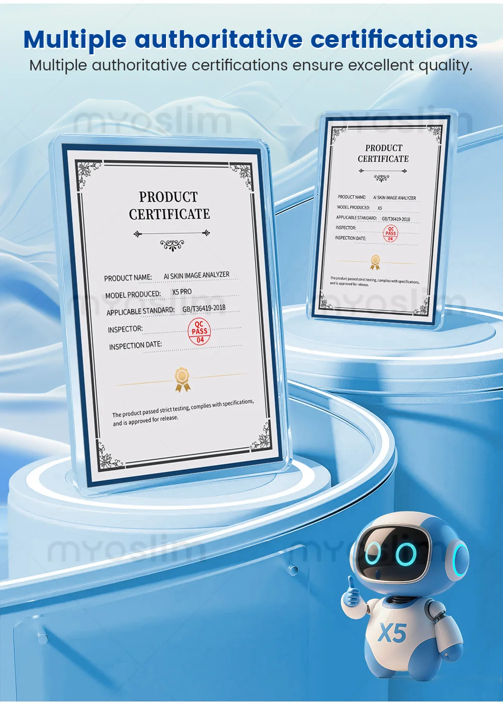 Comprehensive Skin Analyzer: The X5 skin analyzer provides a detailed skin analysis, assessing pores, wrinkles, and texture, delivering an in-depth diagnosis for effective skincare solutions
