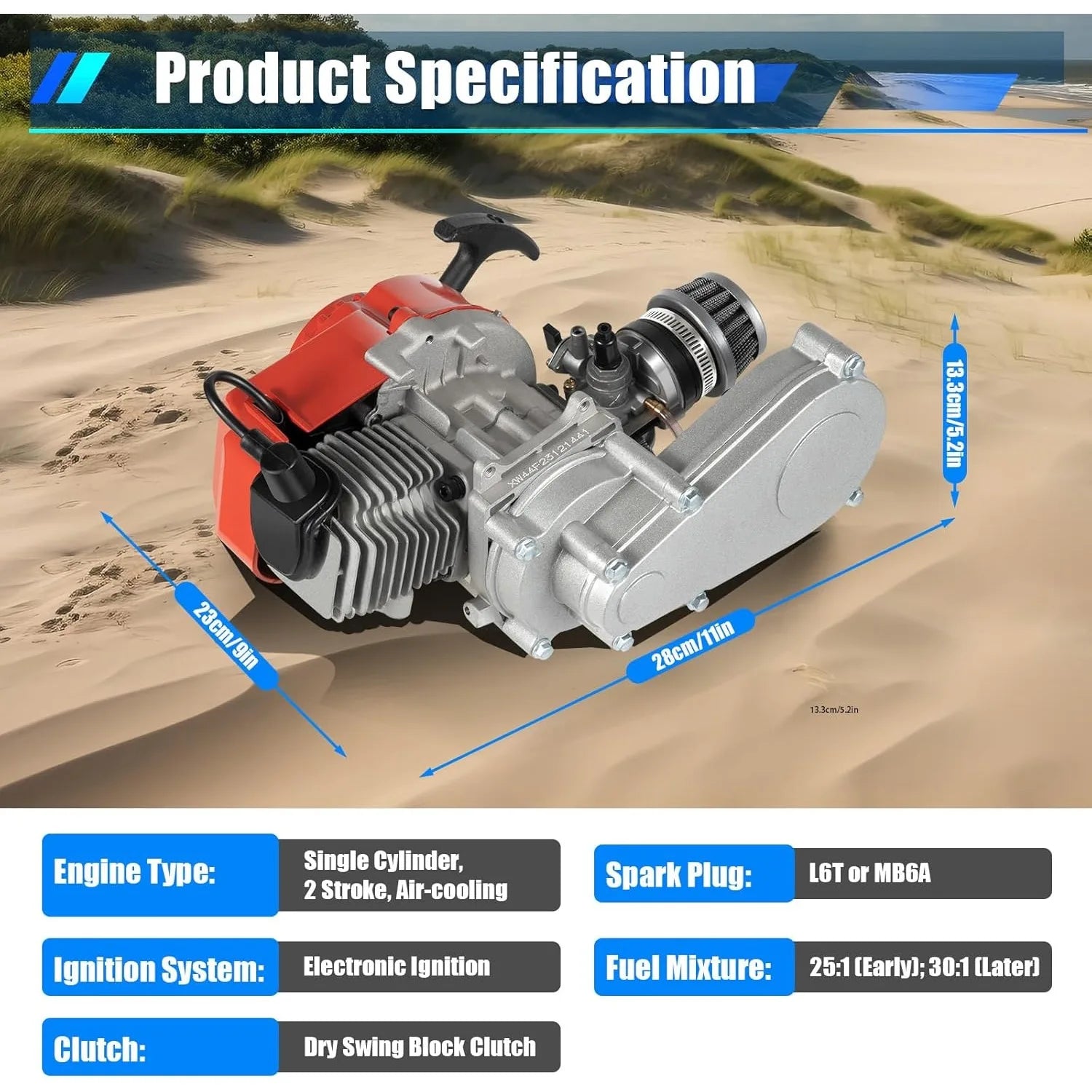 49cc 2 Stroke Racing Engine Motor, Gasoline Engine Single Cylinder Pull Rope Start Motor for Dirt Bike Pocket Bike ATV Scooters