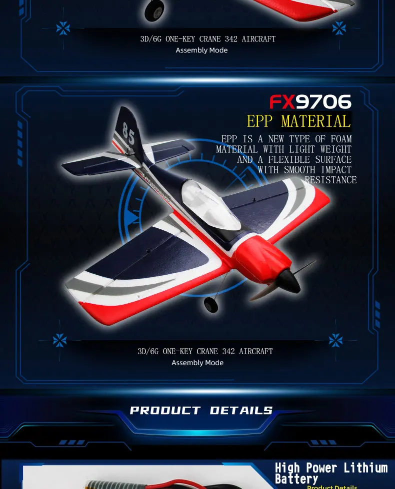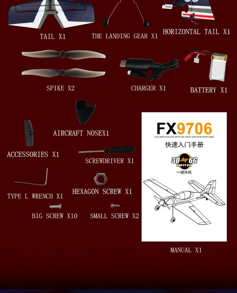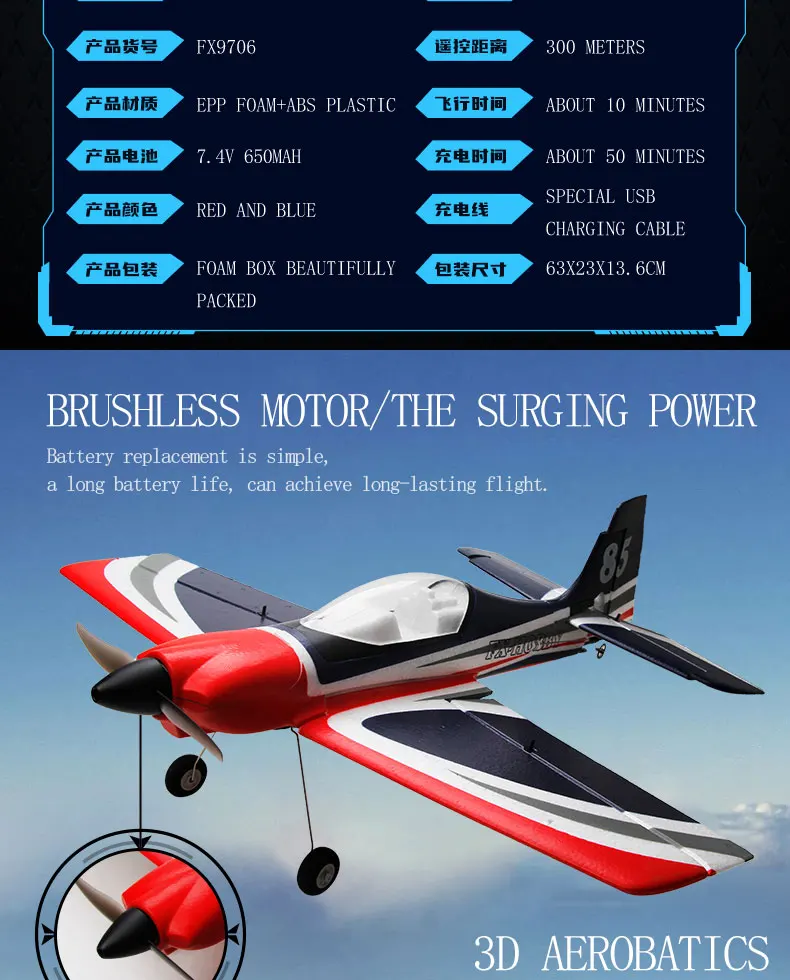 Product name : FX9706 Five-channel J3 remote control aircraft (3D/6G brushless motor)