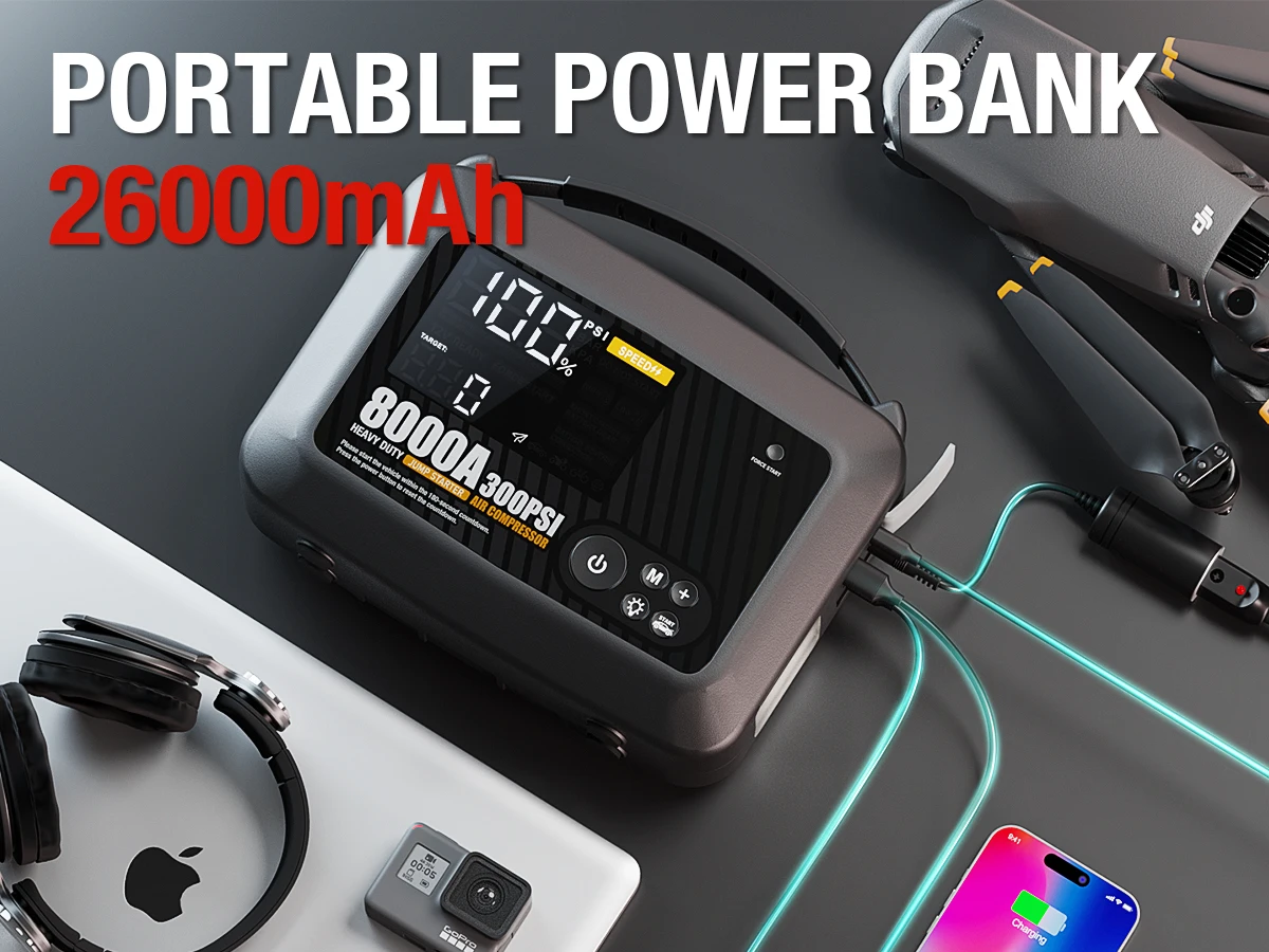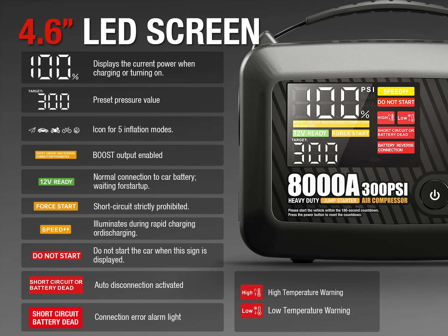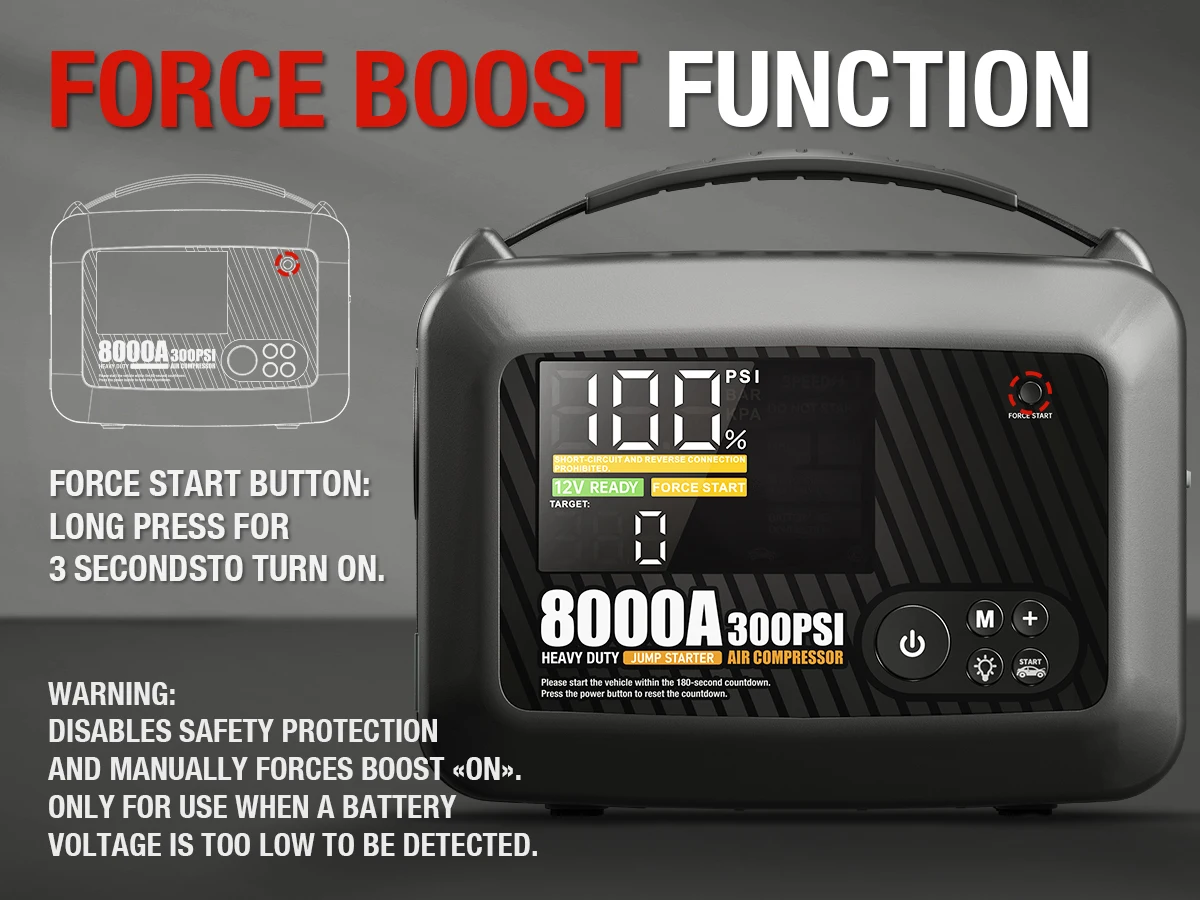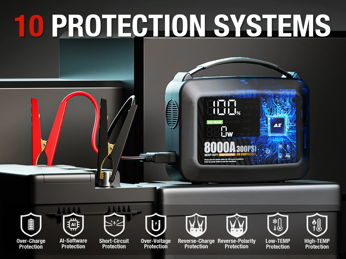8000A Professional Heavy Duty Car Jump Starter With Air Pump Powerful Car 12V Car Battery Starter Booster Starting Device