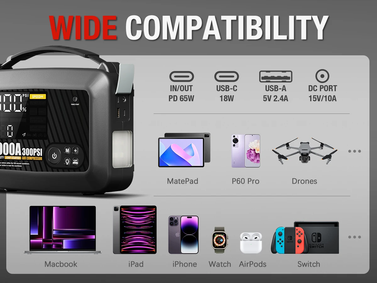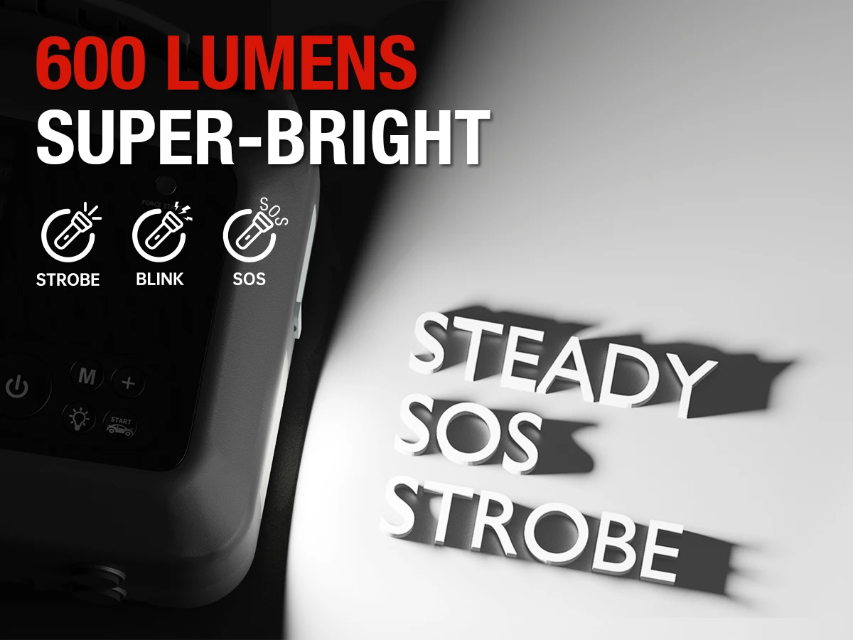 2. When connected to the car battery (without starting the vehicle), the car will not drain the jump starter’s power (long-lasting battery)