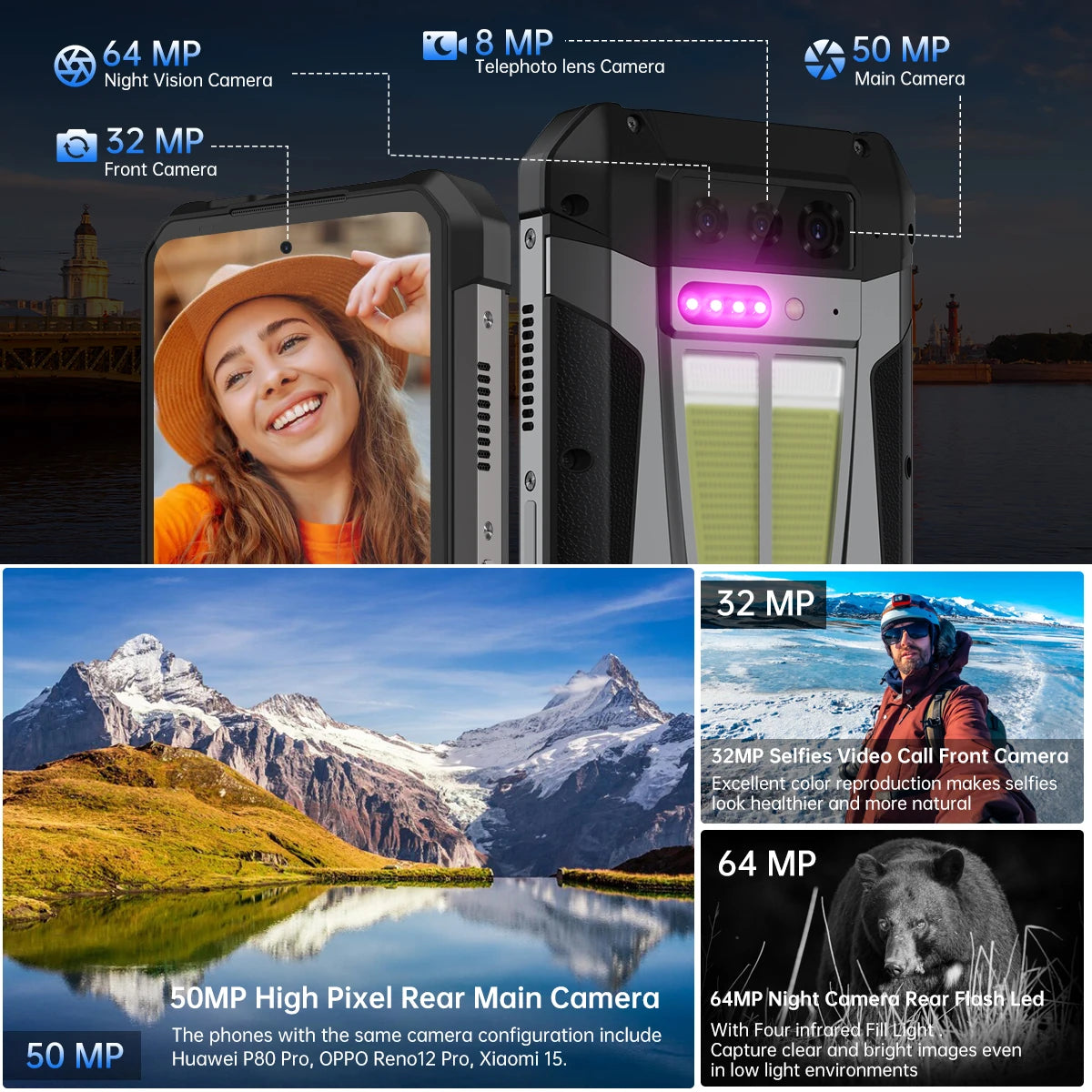 8849 Tank 4 11600mAh large battery, paired with 120W fast charging technology and MediaTek 5G UltraSave 3.0+energy-saving technology,works together to make your phone charge faster, thinner, lighter, and have longer standby time, meeting your daily and outdoor exploration needs.