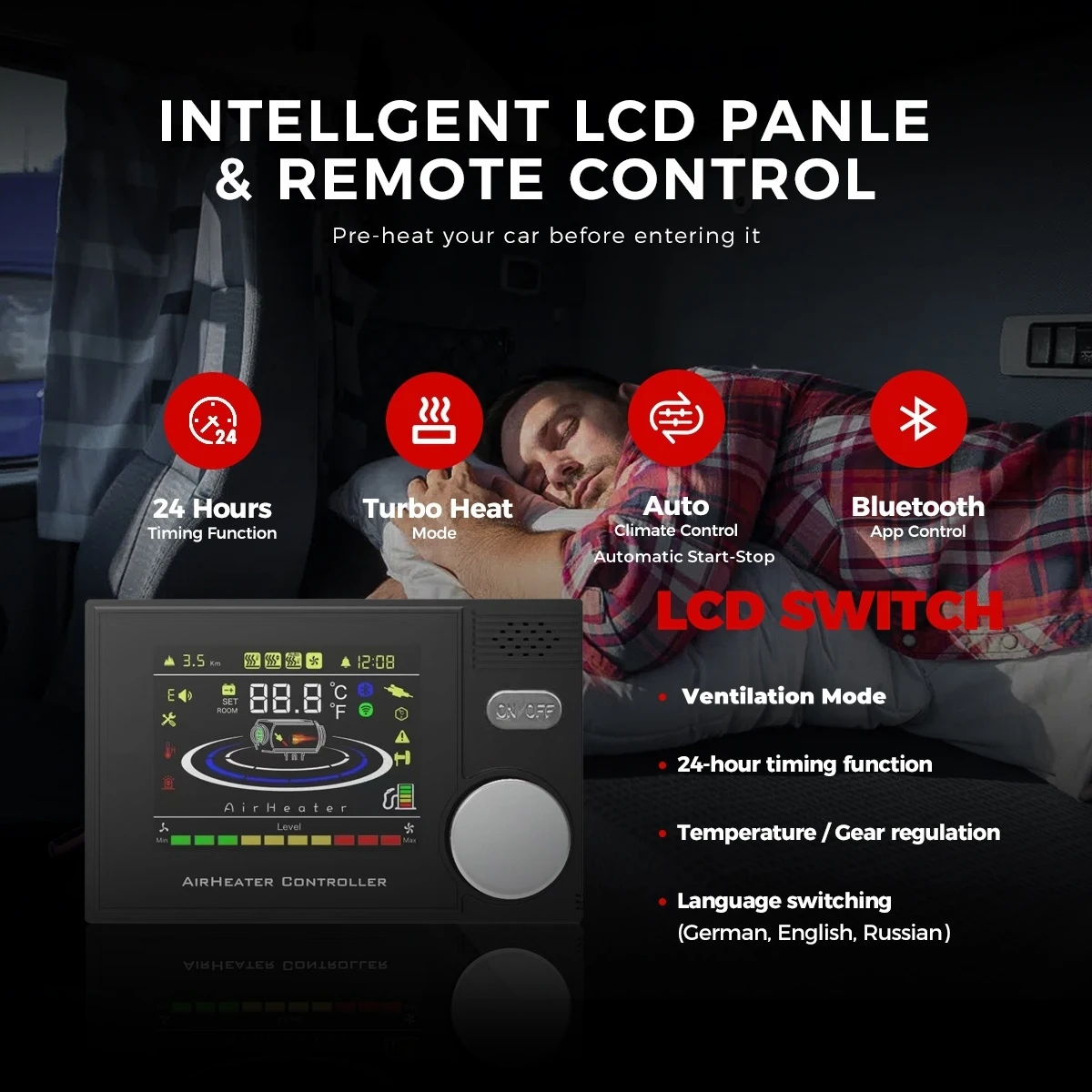 ✅ Intelligent control: LCD controller+Bluetooth APP+remote control: The upgraded heater motherboard comes with Bluetooth control to preheat the vehicle from outside, keep the interior warm, preheat the engine, and prevent window icing.