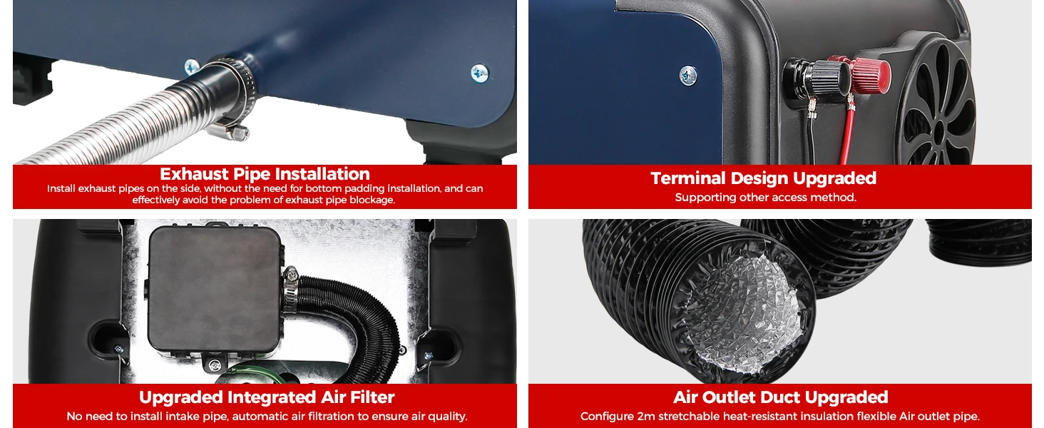 ✅ Exhaust pipe installation upgraded: Install the exhaust pipe from the side, no need to install the bottom lining, and can effectively avoid the problem of exhaust pipe blockage