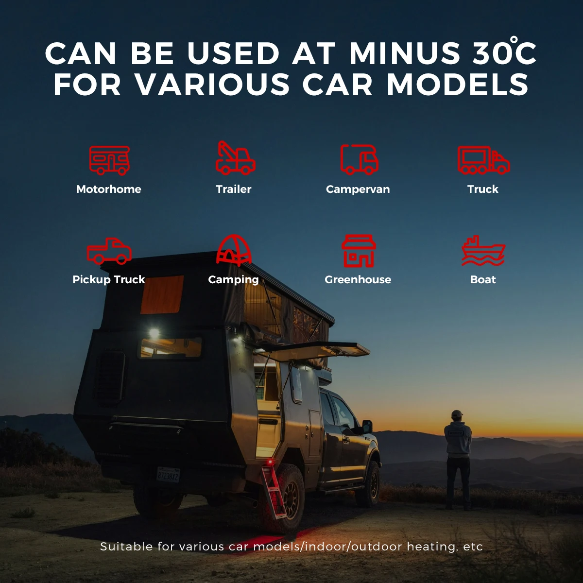 Heater Working Temperature: -40℃~+20℃/-40℉~+68℉