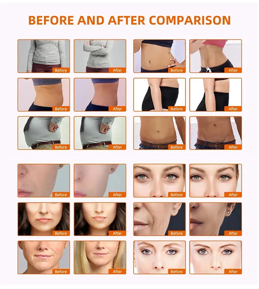 * Three levels of lifting: The cavitation slimming device has third level lifting for eye, fourth level lifting for face, sixth level lifting for body. These three levels of lifting could enhance blood circulation, accelerate the decomposition of fat, take away wastes;