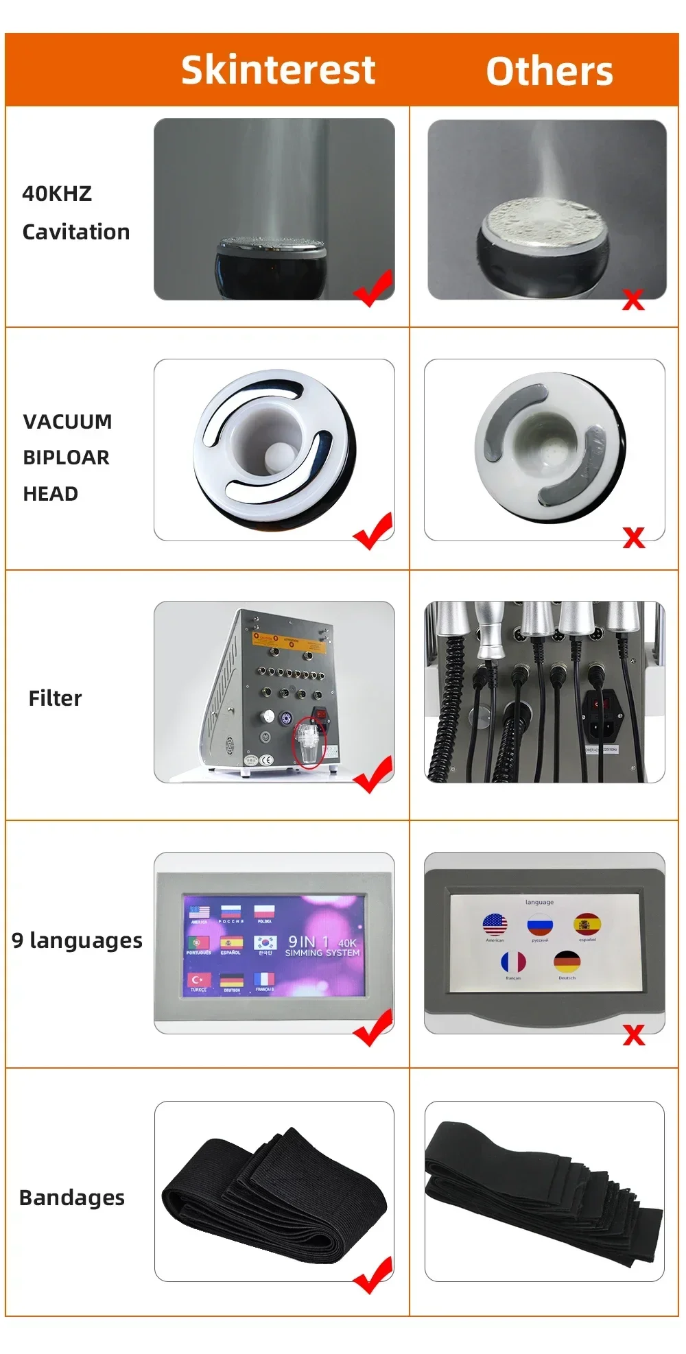 9 in 1 40K Ultrasonic Cavitation Machine Vacuum Lipo Lase Slimming Burn Fat Lift tighten Skin Tighten Spa Body shaping Massage