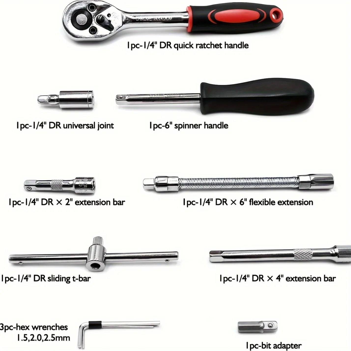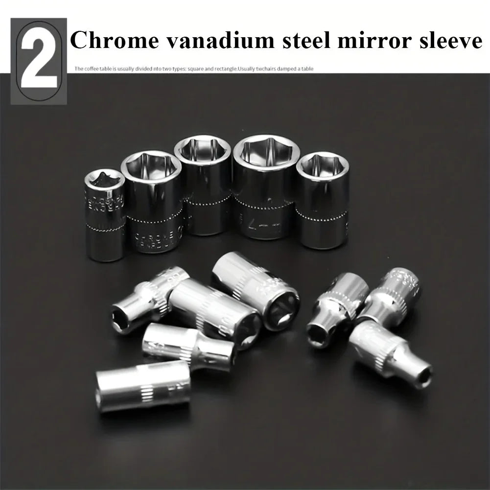Excellent quality: Our tool kits are all made of high-quality chromium-plated vanadium steel alloy with a mirror chromium-plated finish that perfectly achieves outstanding strength and wear resistance.