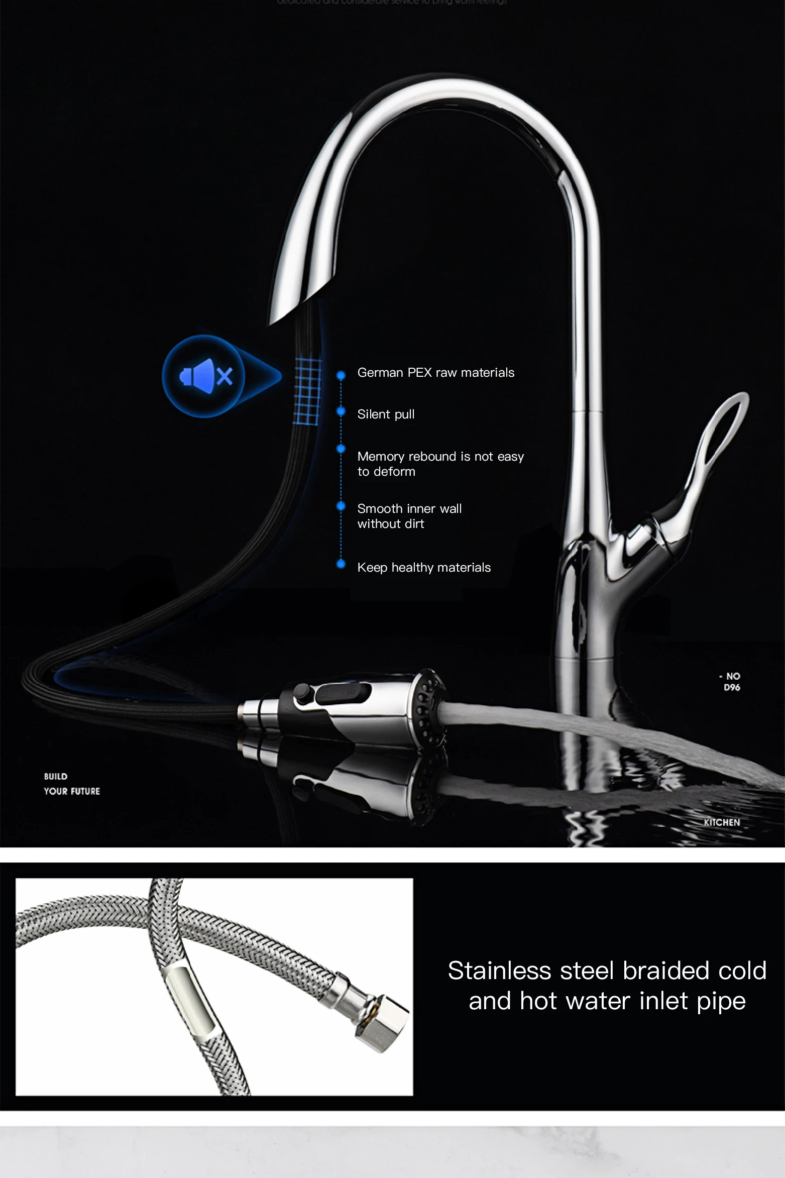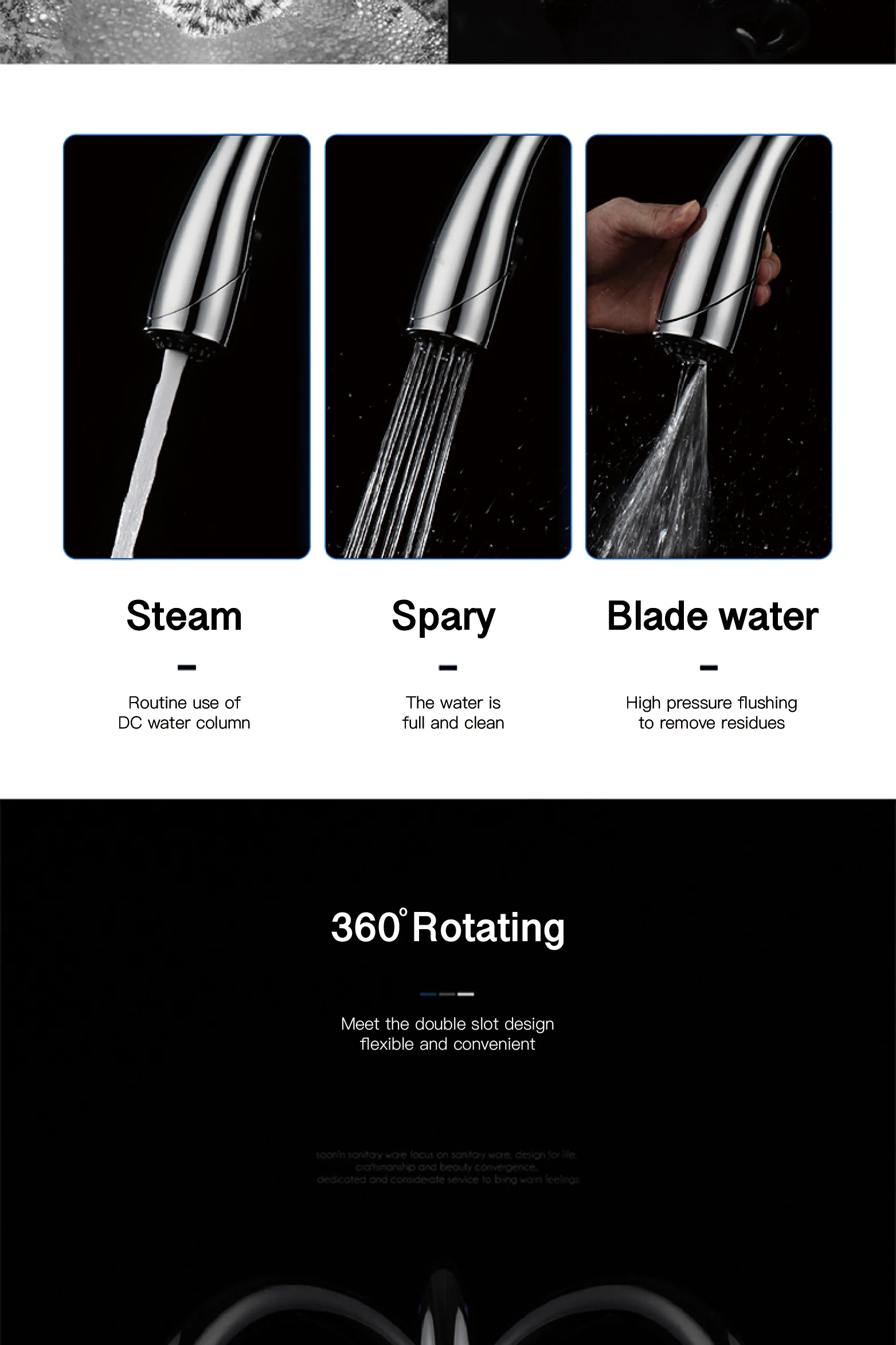 AITANA luxury gun gray brass pull-out kitchen faucet touch switch design single handle hot and cold water 3-function sink faucet