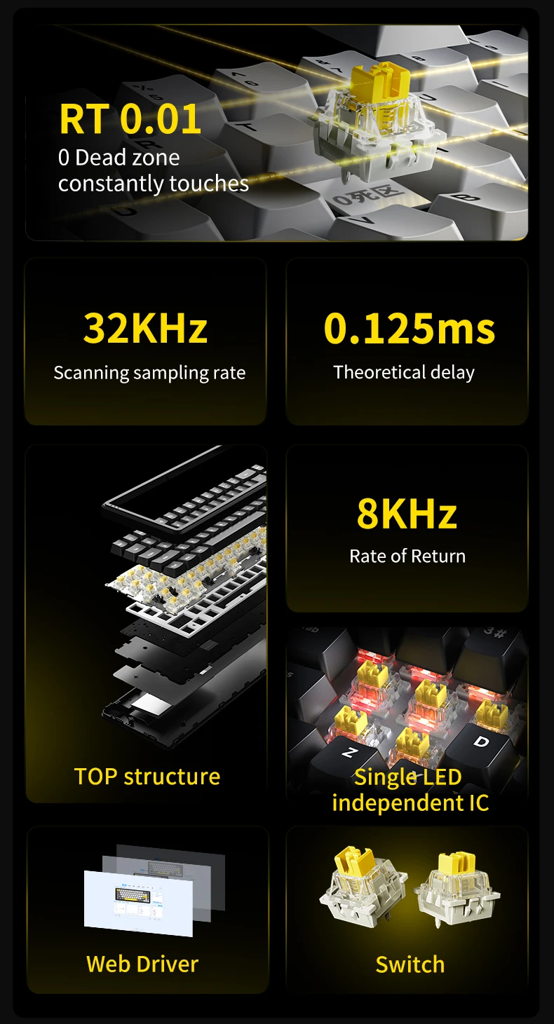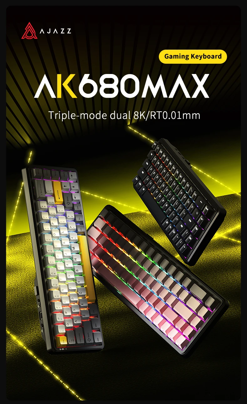 AJAZZ AK680MAX-Hall gaming magnetic Switch-wireless mechanical keyboard supports wired 8K refresh rate-RGB-DIY