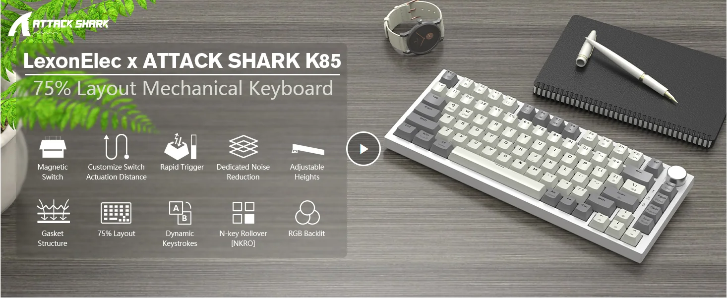 ATTACK SHARK K85 Rapid Trigger Mechanical Keyboard, Magnetic Switch, Adjustable Actuation, Apex Pro TKL Wired Esports Gaming Key
