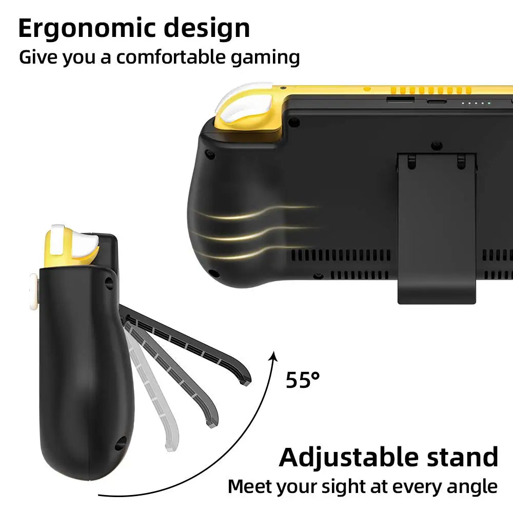 【Foldable Bracket & Game Card Slot】Hidden brackets are supported a variety of angles,ergonomic Design Grip reduces hand fatigue and provides you with ultra comfortable experience. The additional card slot allows you to store extra 1 game card.