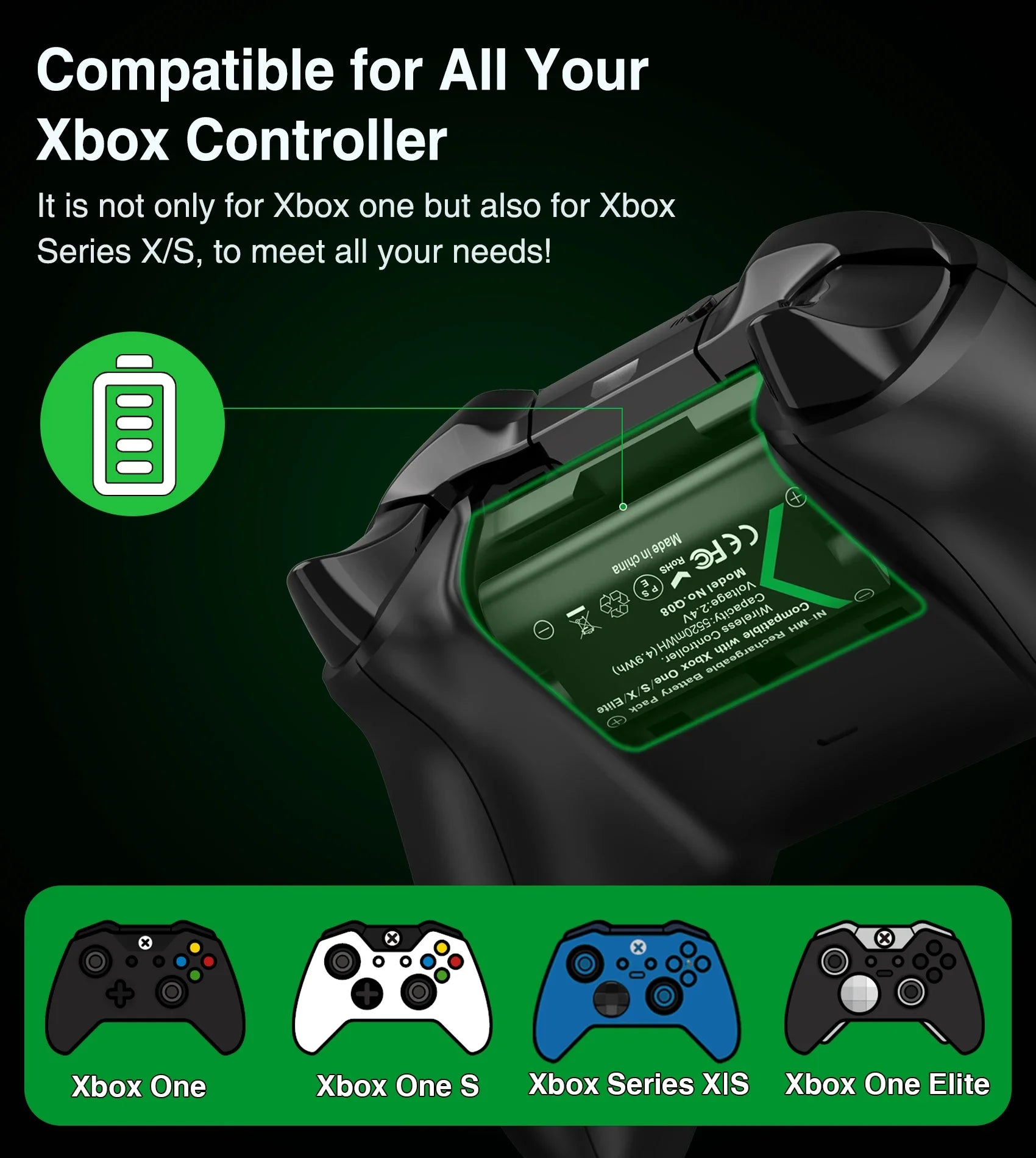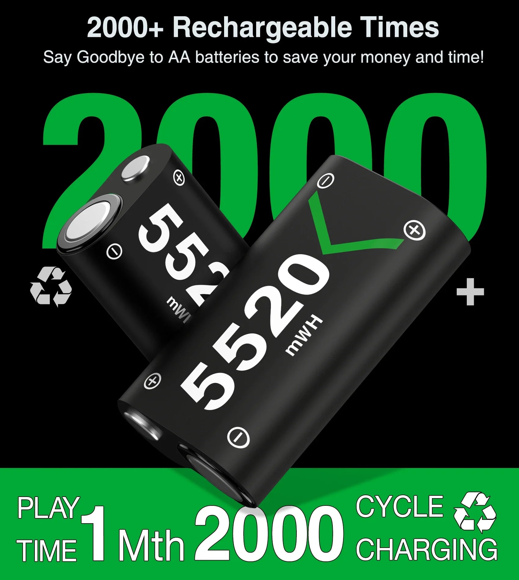 BEBONCOOL 2X5520 mWh Rechargable Battery For XBOX Controller Charger For XBOX Serise S/X XBOX ONE S/X/Elite Gamepad Battery Pack