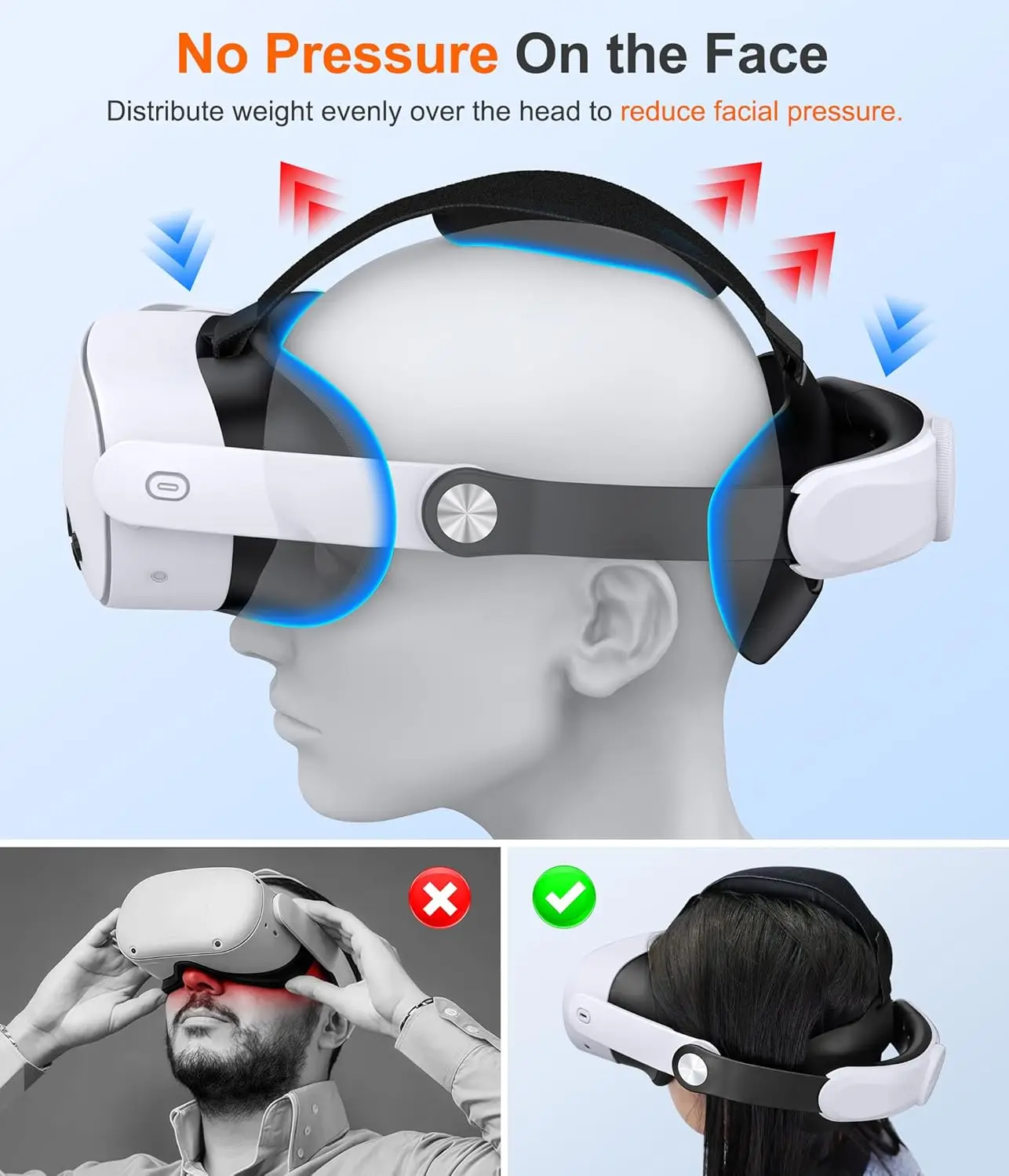 1.Customizable Comfort for All Ages: Featuring an adjustable knob and a wide, soft contact surface, this head strap for Oculus Quest 2 redistributes weight evenly, minimizing strain on your face and head. Whether you’re using a head strap for Meta Quest 3 or Quest 2 head strap, this design ensures all-day comfort for kids and adults alike