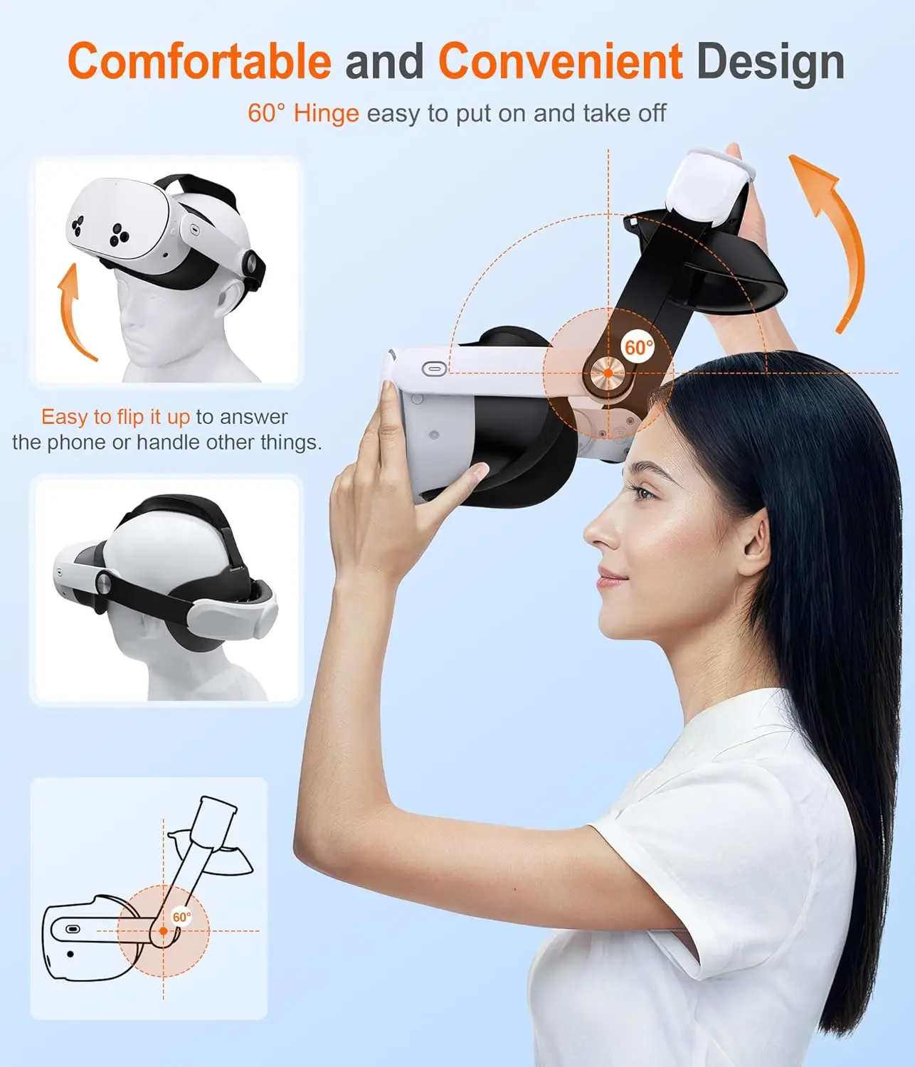 5.55° Flip-Up Convenience: Easily switch between virtual and real worlds with the 55° flip-up design. This feature is perfect for glasses wearers or quick interactions, making it a must-have for any head strap for Oculus Quest 2. Say goodbye to constantly removing your headset—simply lift and go!