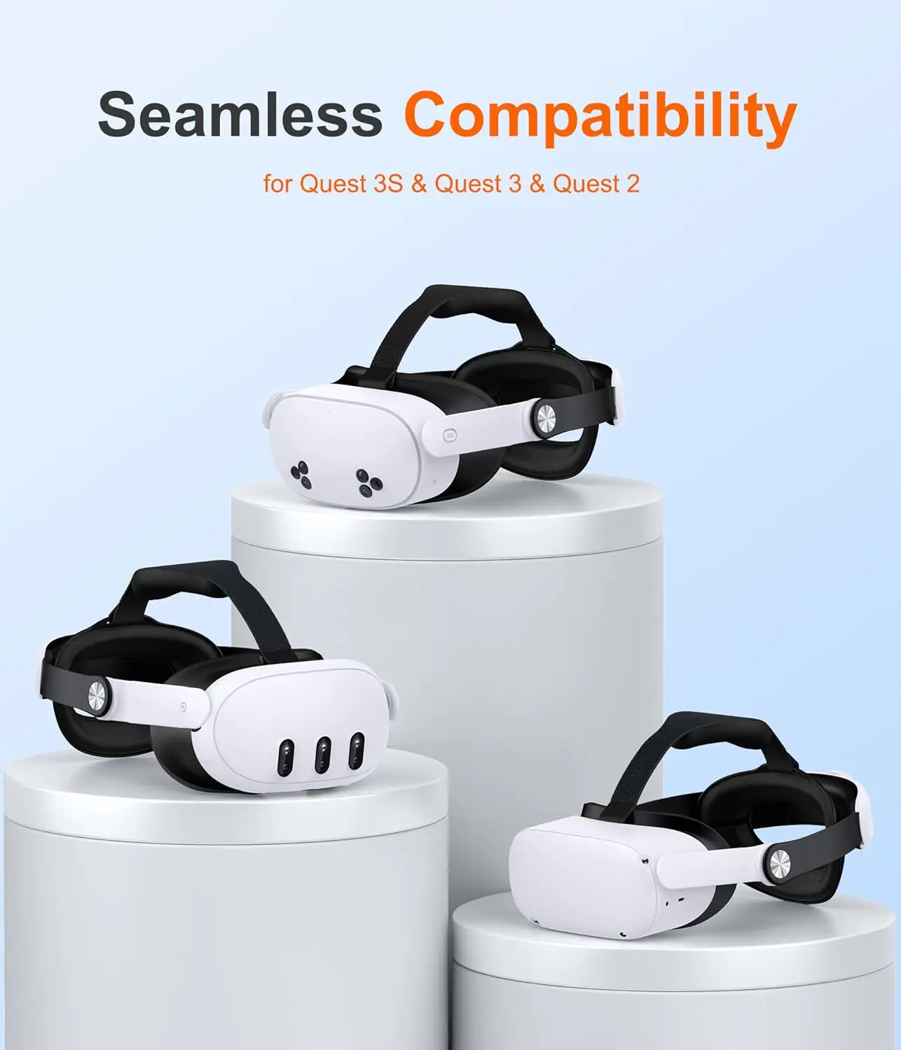 3.Ultimate Compatibility for Meta Quest Series: Upgrade your experience for VR with our Quest 3 head strap, designed for seamless compatibility with Meta Quest 3, Quest 3S, and Quest 2 head straps. The ergonomic design and dual fasteners ensure a secure fit, reducing facial pressure for longer, more immersive gaming sessions