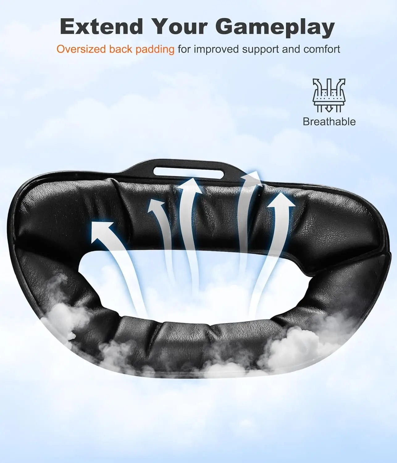 2.Upgraded Comfort with Custom Pad: Enjoy superior cushioning with a soft, custom-designed pad that wraps around your head for enhanced support and pressure relief. Made from breathable, skin-friendly materials, this ultra-soft pad maximizes comfort. It enhances stability and fit, making it the perfect addition to your headset strap for long-lasting comfort during extended gameplay