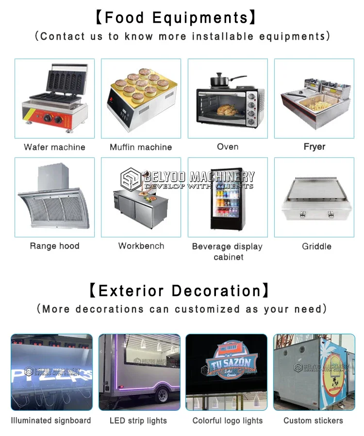 For the inside equipment,If you need any cooking utensil or customization.please inform my manager what kind of snacks would you like to sell inside, so that the most suitable machines could be installed.