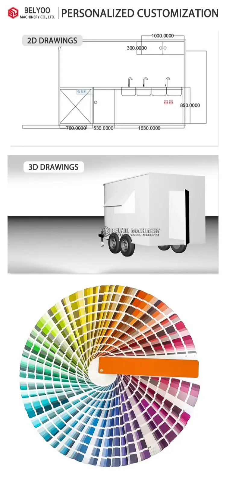 We will tell you the food trailers fully equipped mobile food progress every week, and send you multi-angle videos after the food trailers fully equipped mobile food is completed.