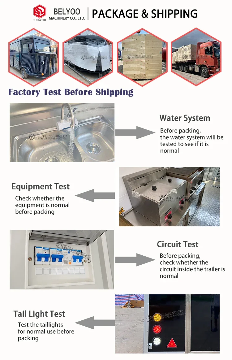 5.How can we confirm the food trailers fully equipped mobile food before shipping?