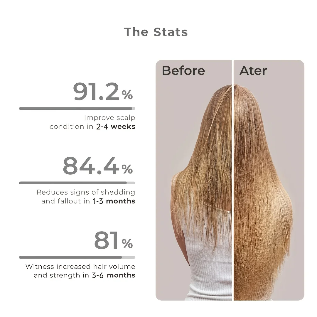 With continuous output of 3x deep energy, it enhances blood flow and ATP production, reawakening and anchoring dormant hair follicles.