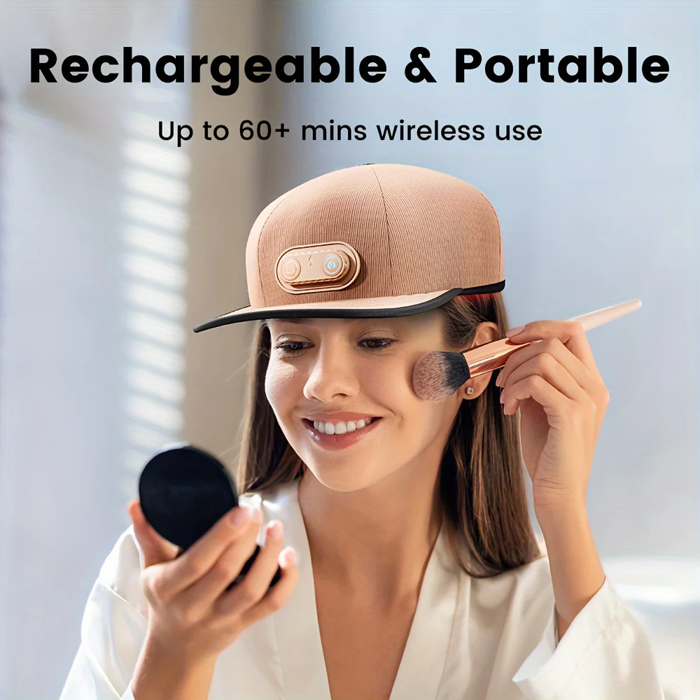 Cordless Portable Heating Cap, 660nm 850nm Wireless Rechargeable Hat, Red Therapy Light Cap with Timer, Adjustable Fit