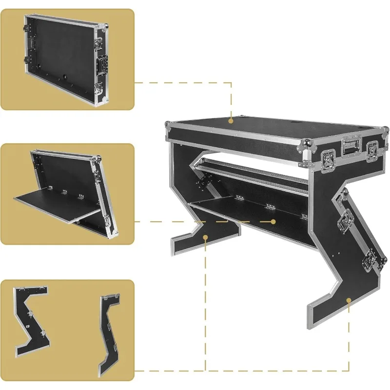 BUILT TO LAST: Crafted with 3/8" (9mm) plywood for the covers and 1/2" (12mm) thick plywood for the Z-shaped legs, this DJ table is sturdy and durable, supporting up to 200 lbs. Perfect for both professional and casual use.