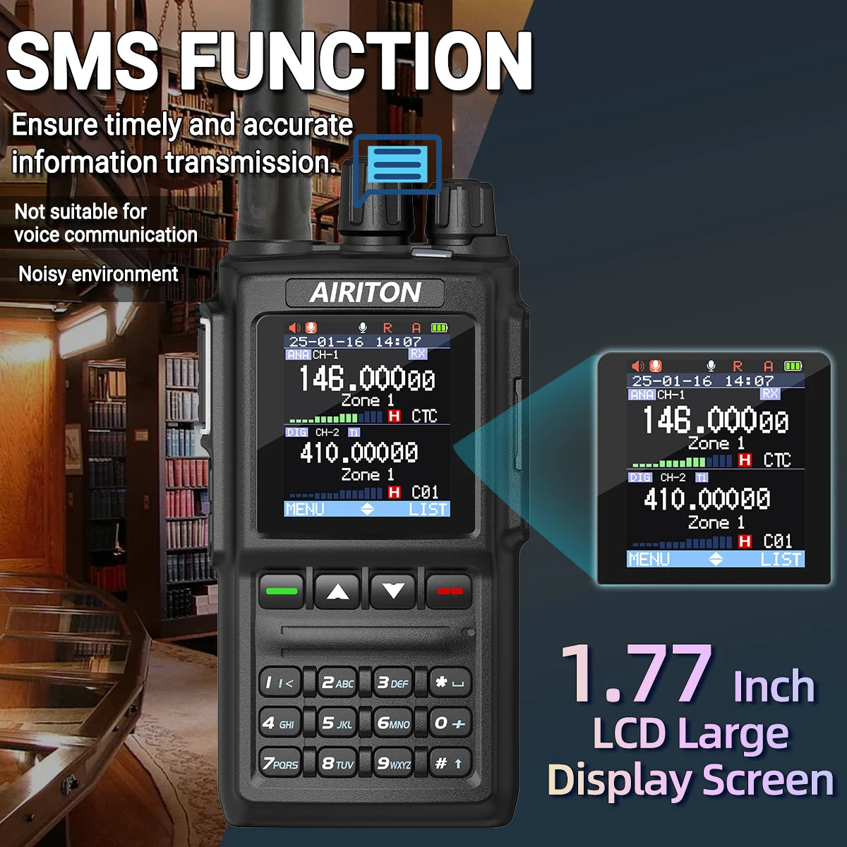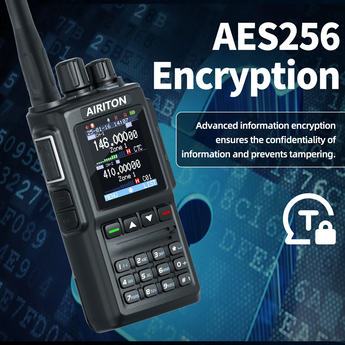 DM-168 Walkie Talkie AES256 Encryption DMR Digital and Analog Dual Band FM Amateur AT-D168UV Two Way Radio with USB-C charging