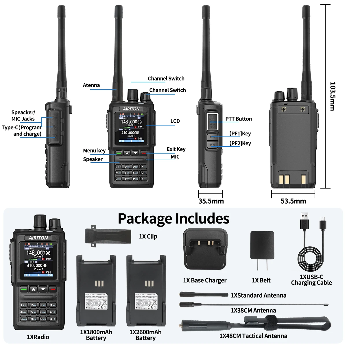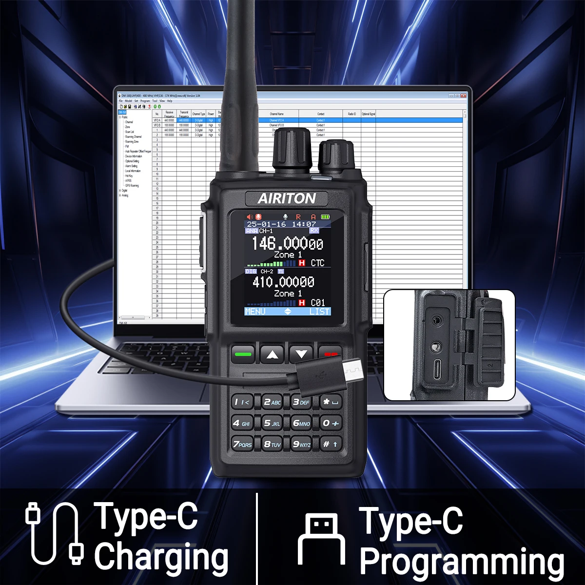 The USB-C jack not only supports charging, but also supports USB programming. Get rid of the dependence on old-fashioned programming cables. Efficient and fast charging and programming ensure that your device is always in a usable state.