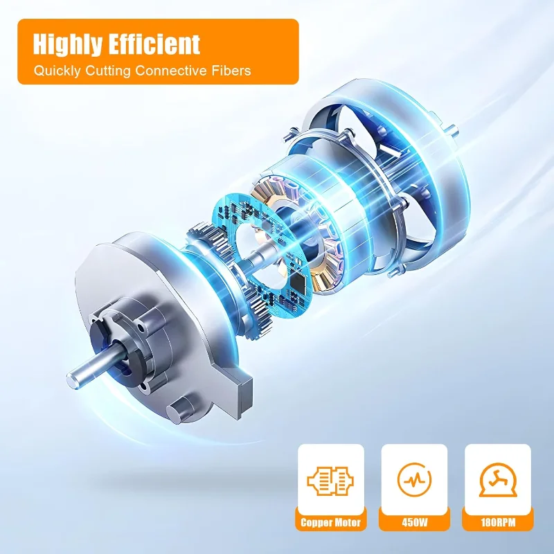 - 【HIGH SPEED TENDERIZING】The double-layer rotating blades quickly pierce the fibrous meat by 180 rpm and knit the meat at the same time to achieve a delicate, tender texture. This not only enhances the taste of the meat but also helps the sauce penetrate. Multiple heat dissipation holes on the side can dissipate heat in time to extend its life.