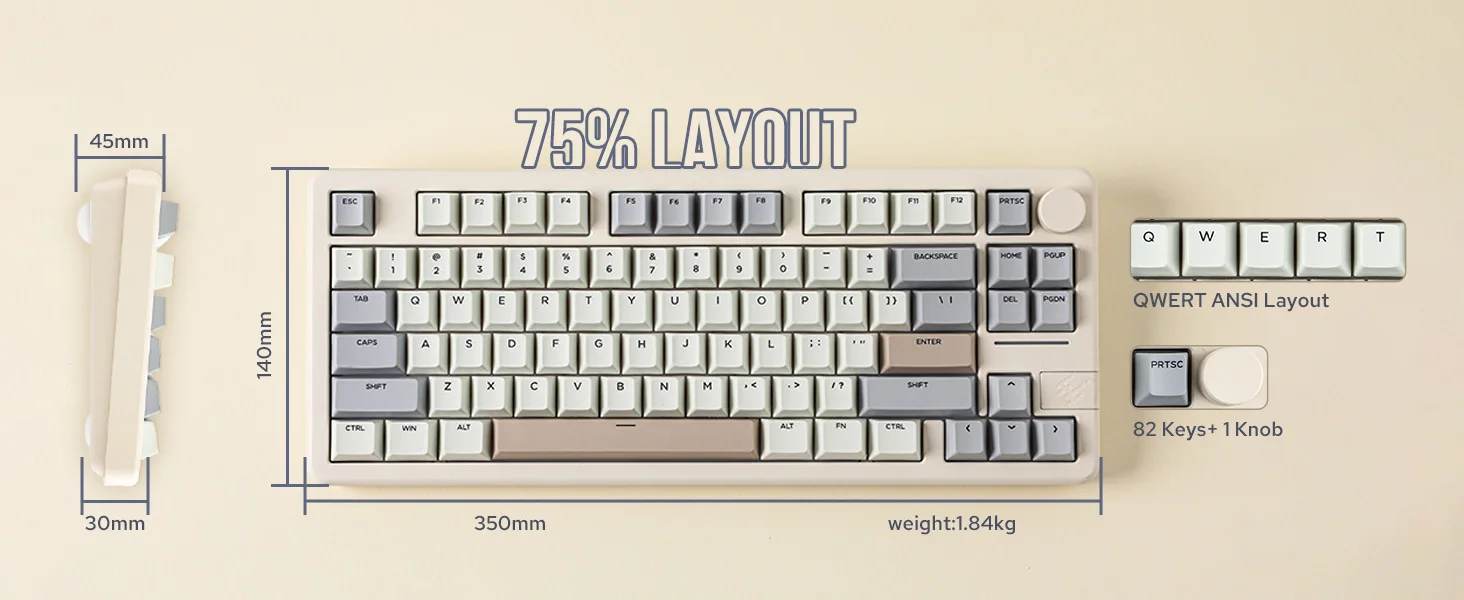 -75% ANSI US Layout Gaming Keyboard with Knob