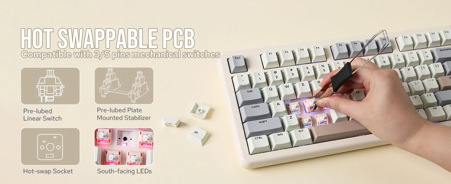 -Full Key Hot-Swappable Sockets compatible with 3pin/5pin Switches